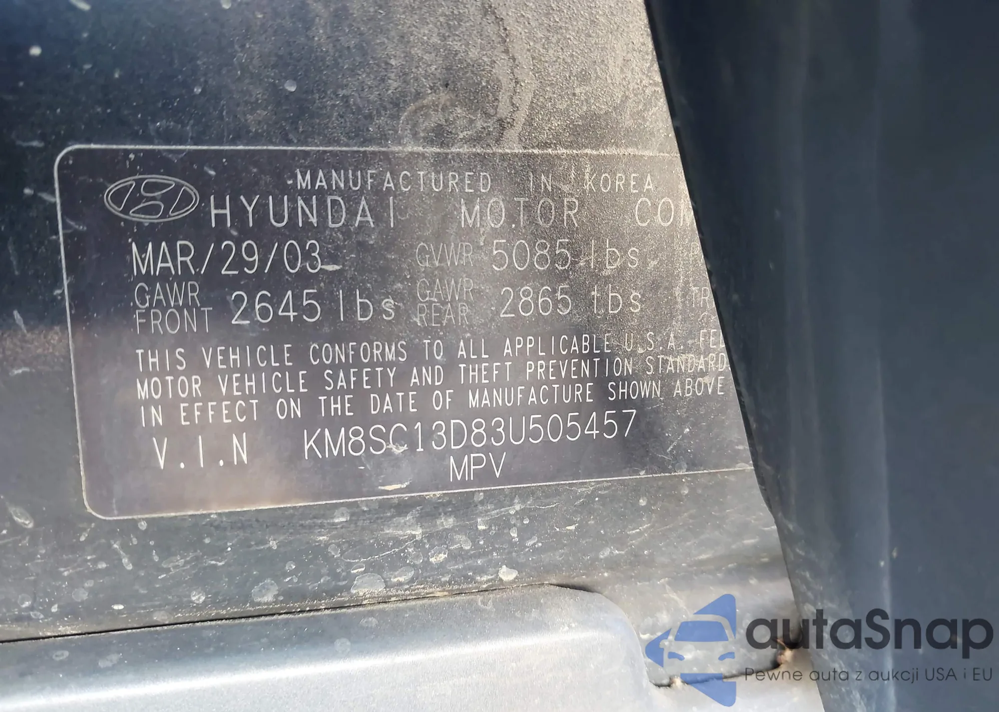 • VIN KM8SC13D83U505457