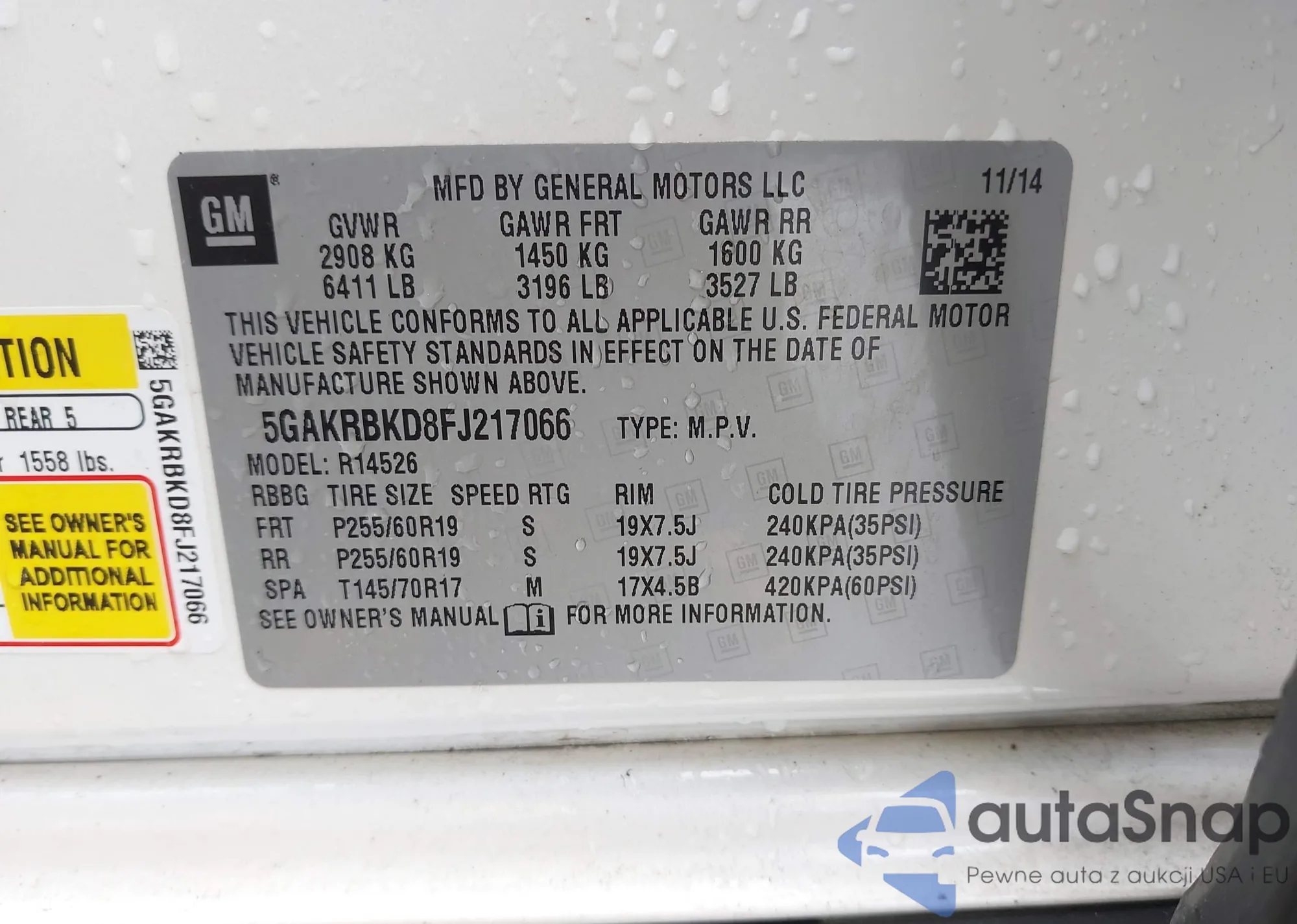 • VIN 5GAKRBKD8FJ217066