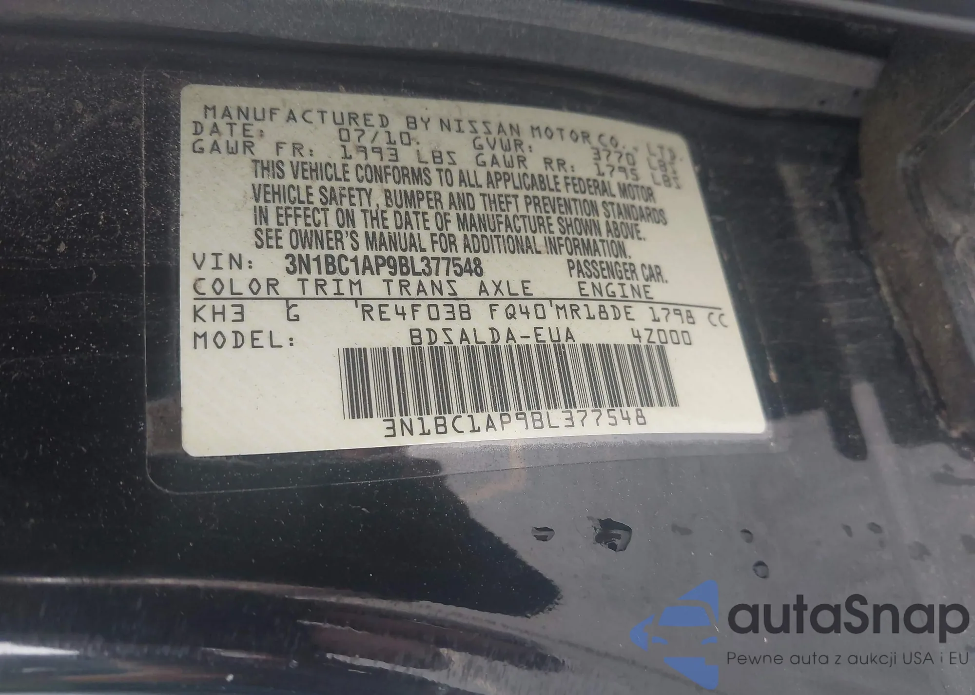 • VIN 3N1BC1AP9BL377548