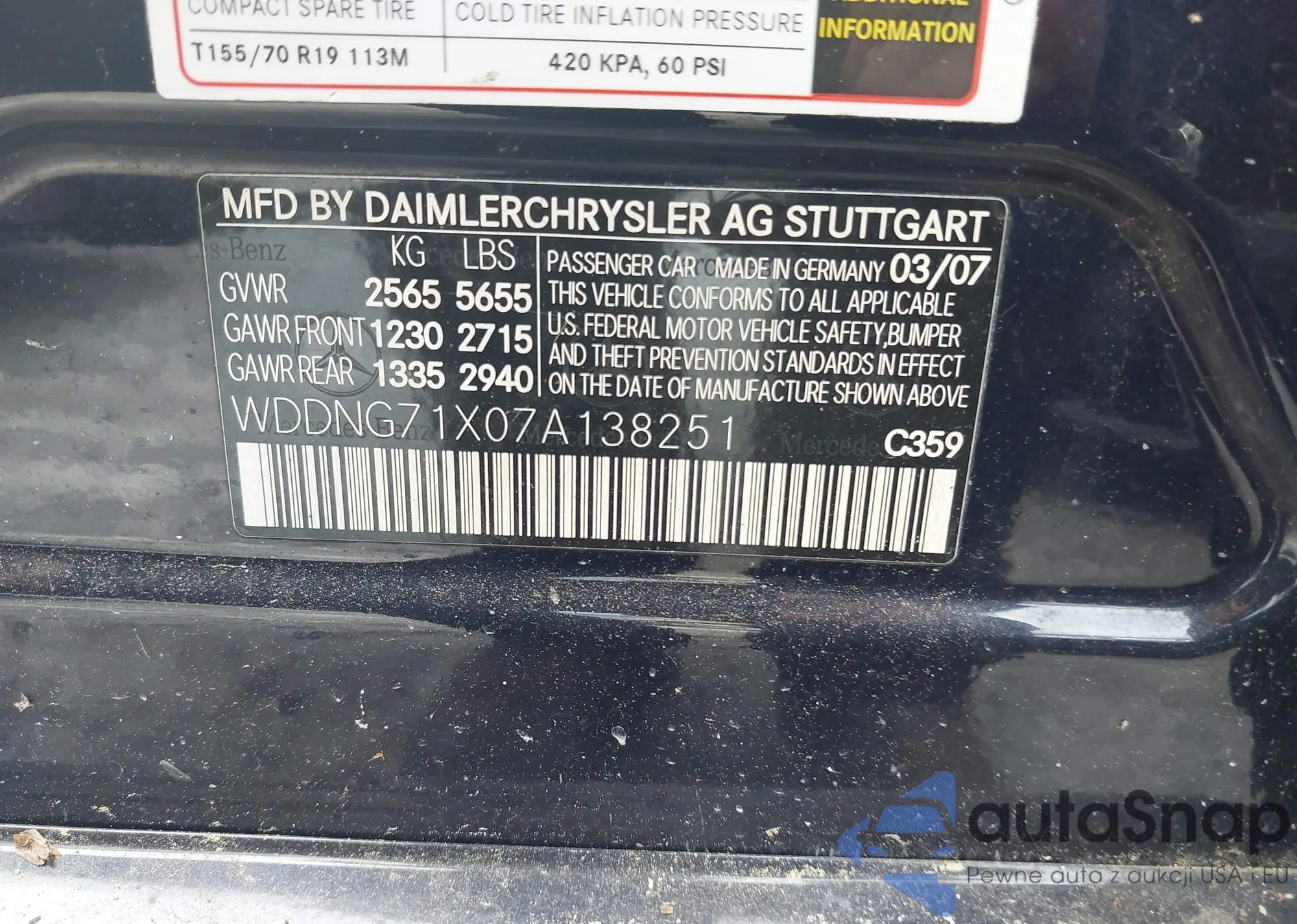 LOT: 43010592 VIN: WDDNG71X07A138251