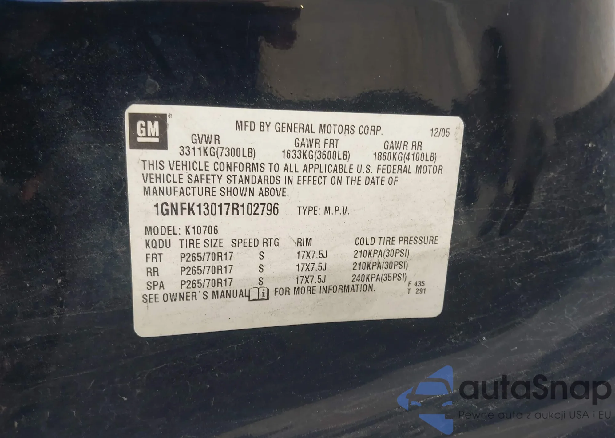 • VIN 1GNFK13017R102796