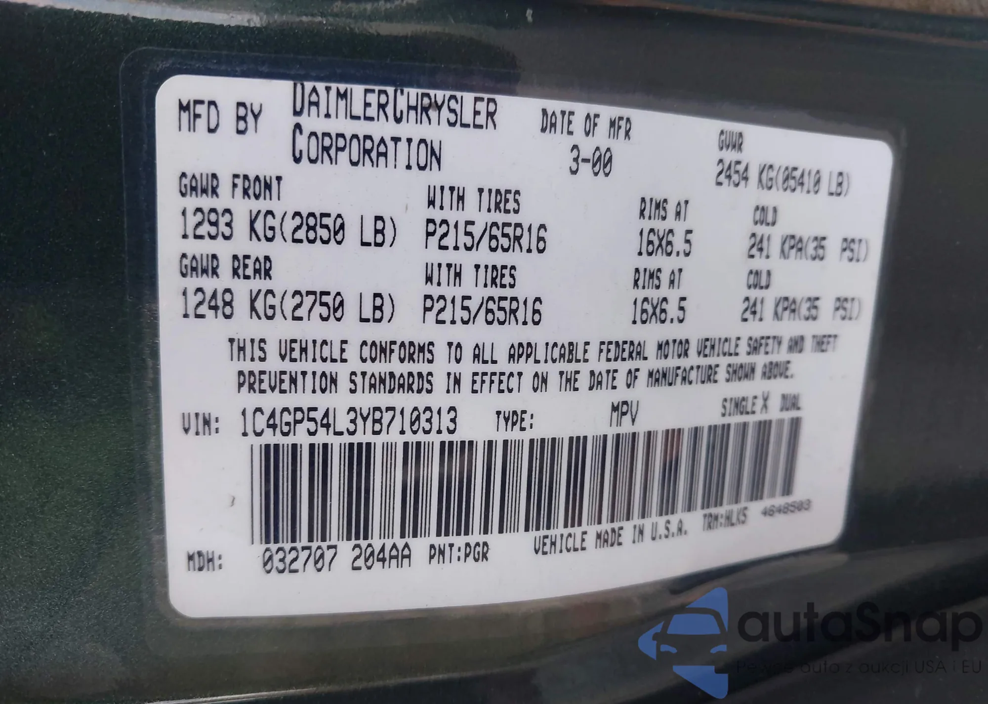• VIN 1C4GP54L3YB710313