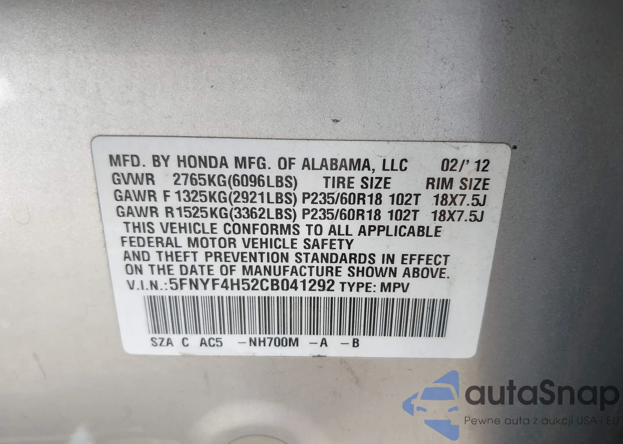 • Lot number 43050032