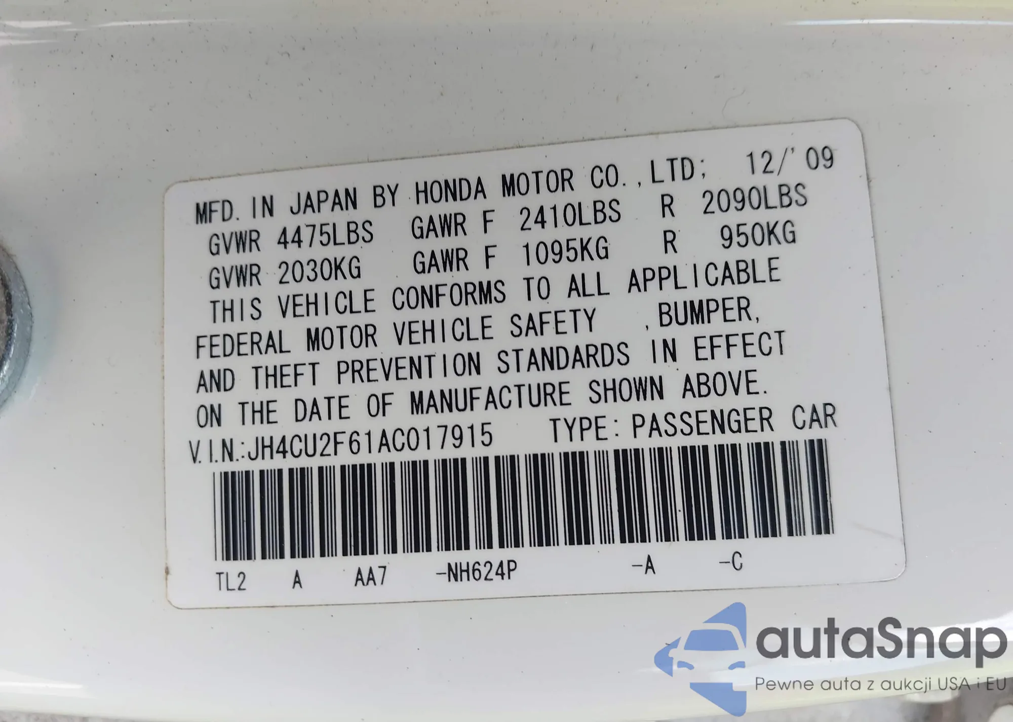 LOT: 43119125 VIN: JH4CU2F61AC017915