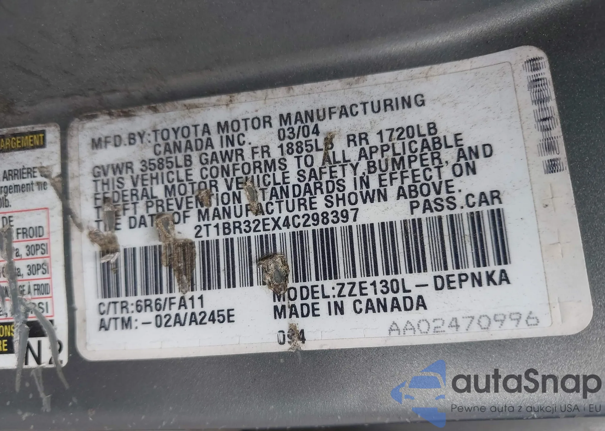LOT: 43139987 VIN: 1NXBR32E26Z635419