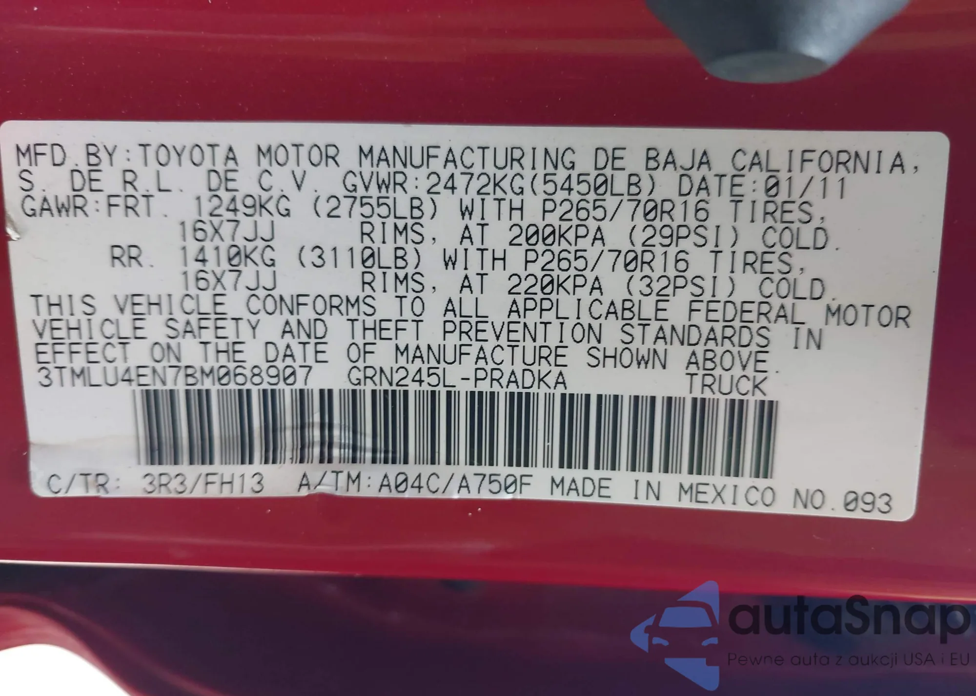 • VIN 4T1G11BKXPU097643