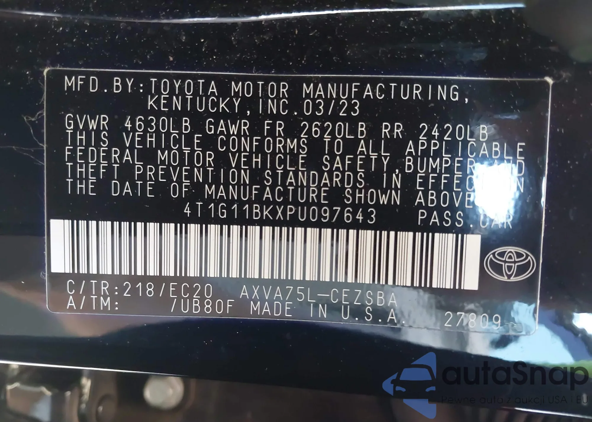LOT: 42833306 VIN: 4T1G11BKXPU097643