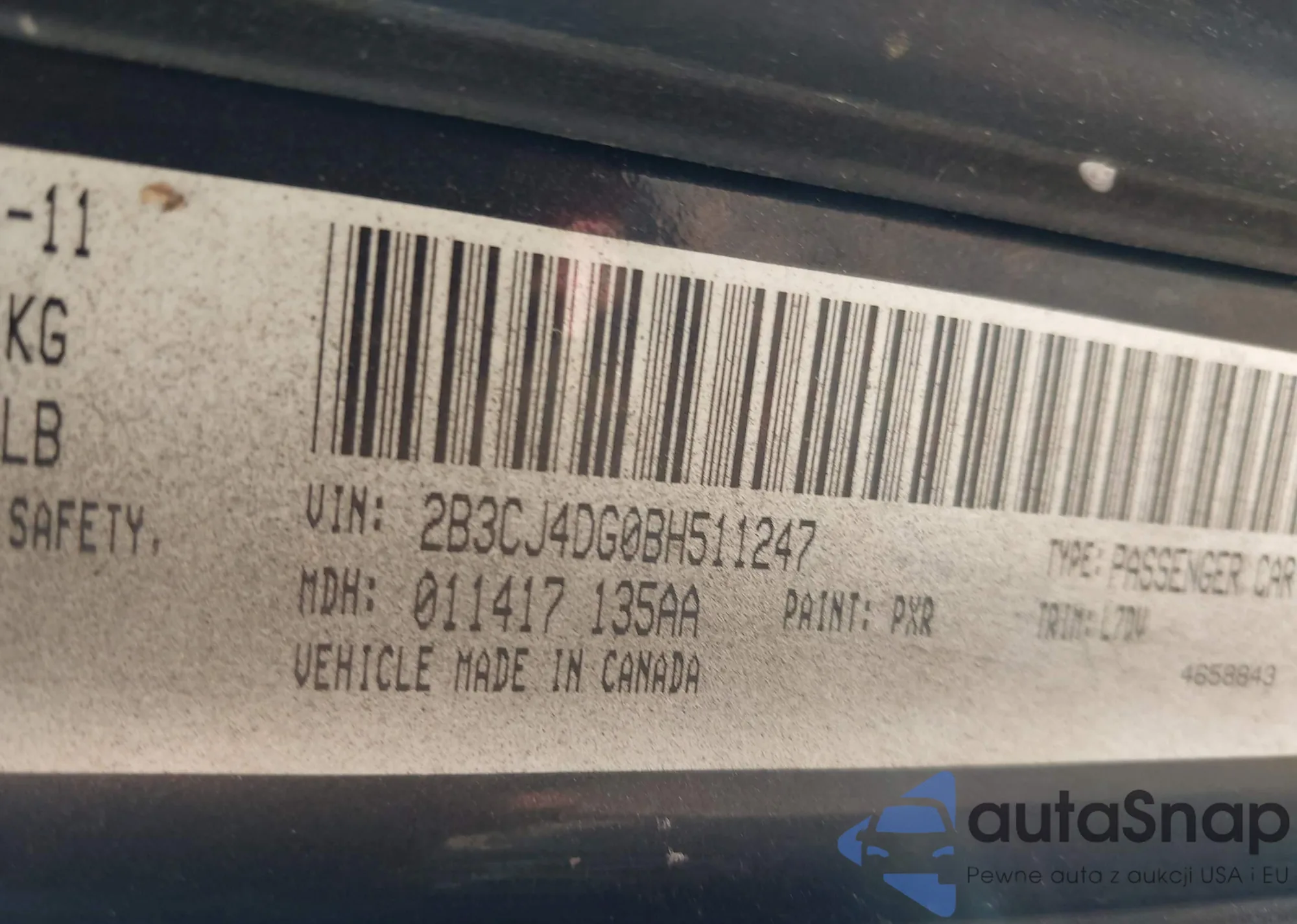 • VIN 2B3CJ4DG0BH511247