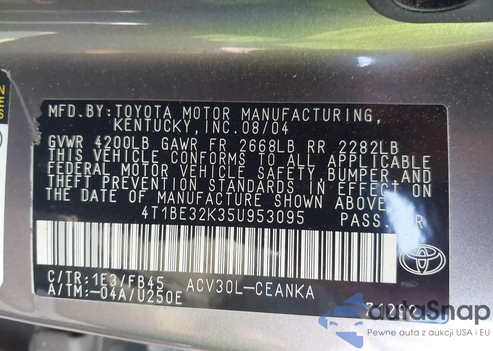 LOT: 42985454 VIN: 4T1BE32K35U953095