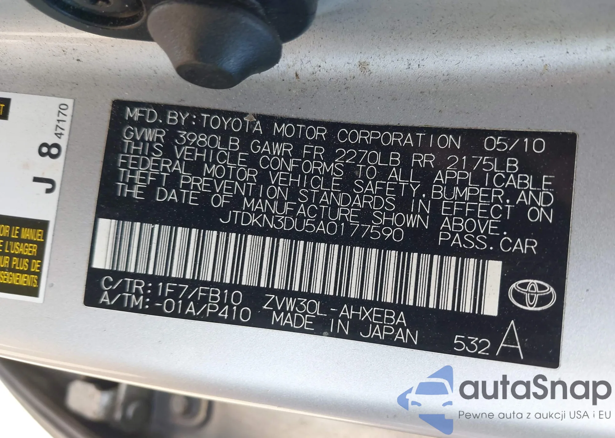 • VIN JTDKN3DU5A0177590