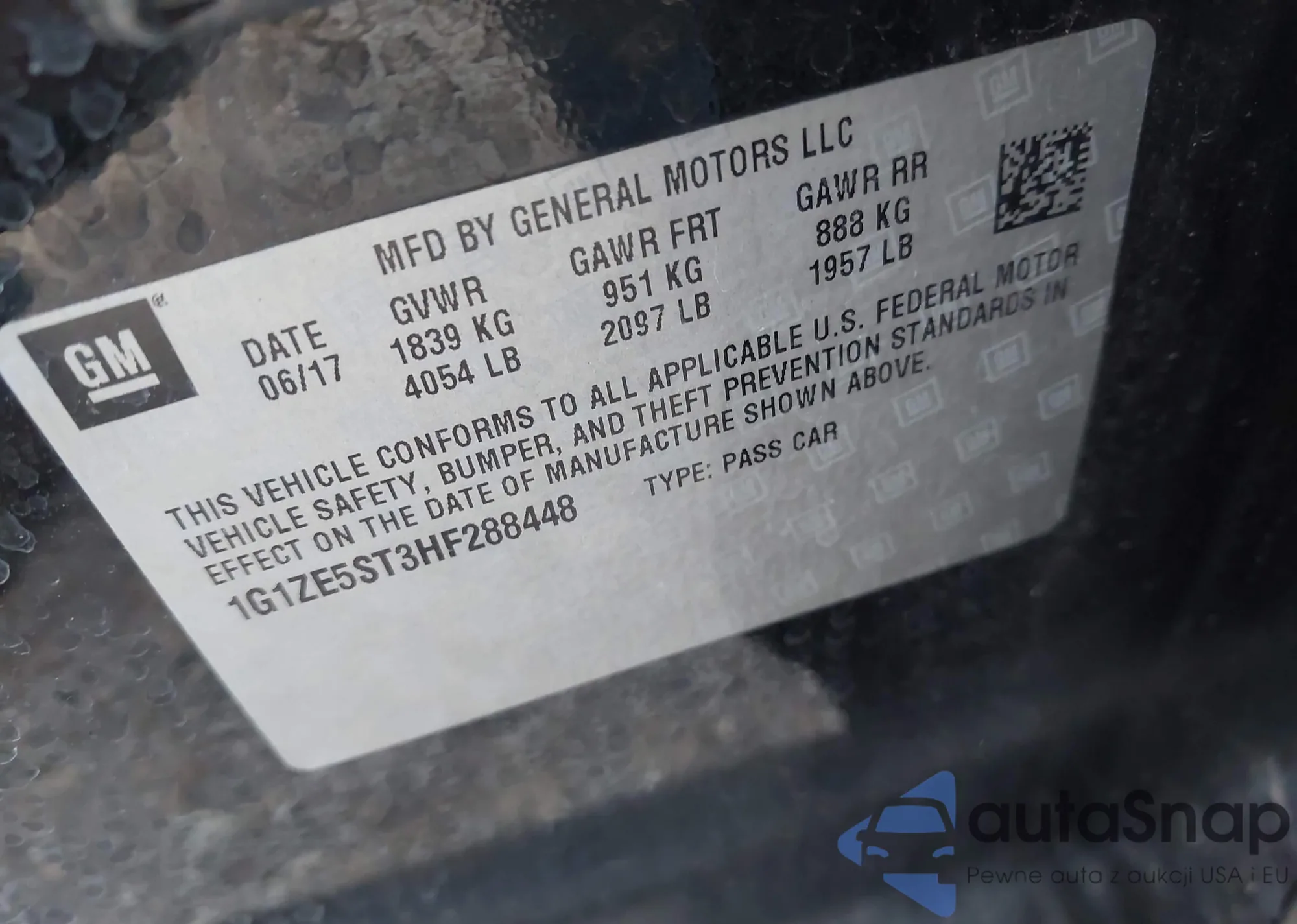 LOT: 43341558 VIN: 1G1ZE5ST3HF288448
