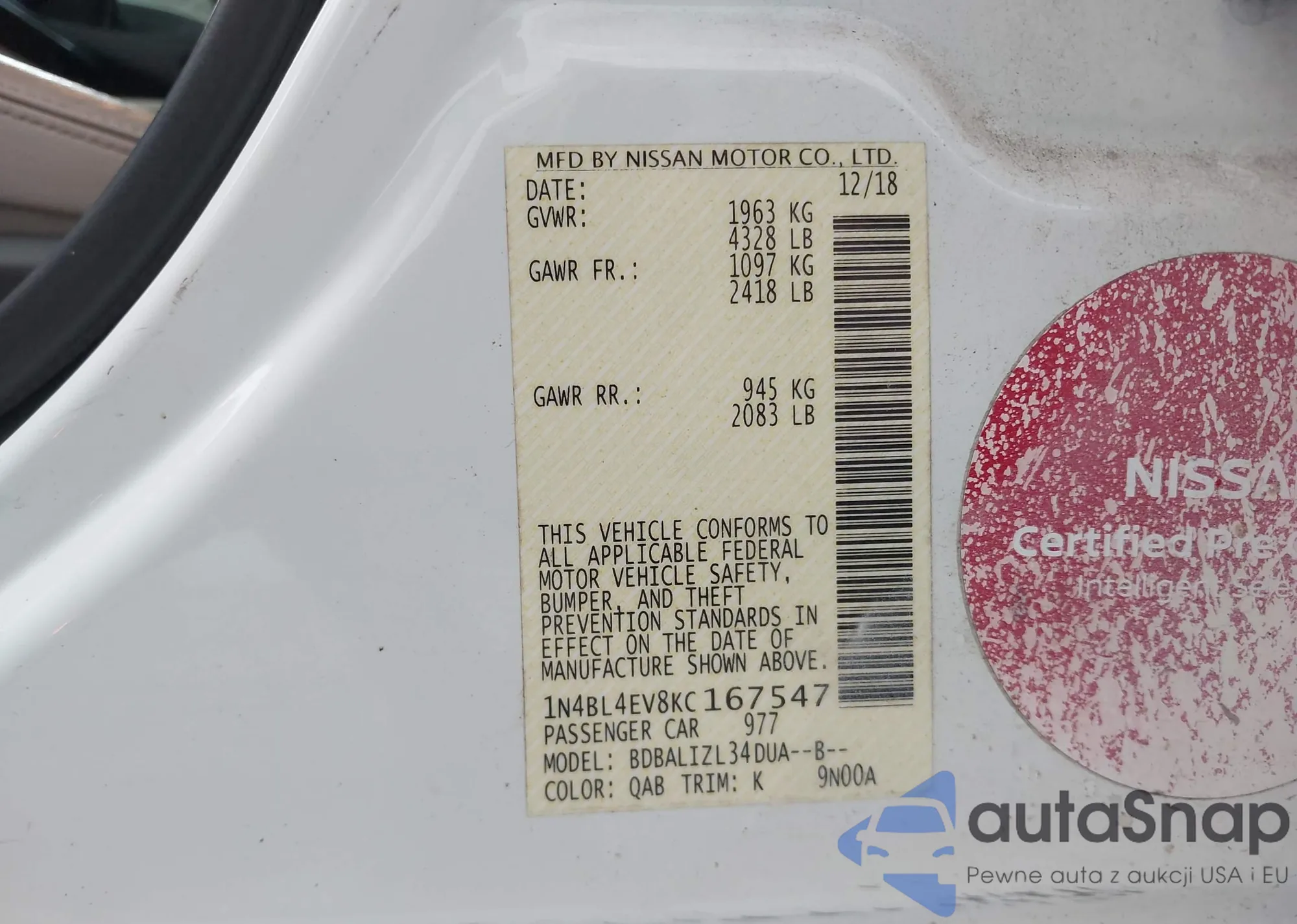 LOT: 43151304 VIN: 1N4AL21E08C218554