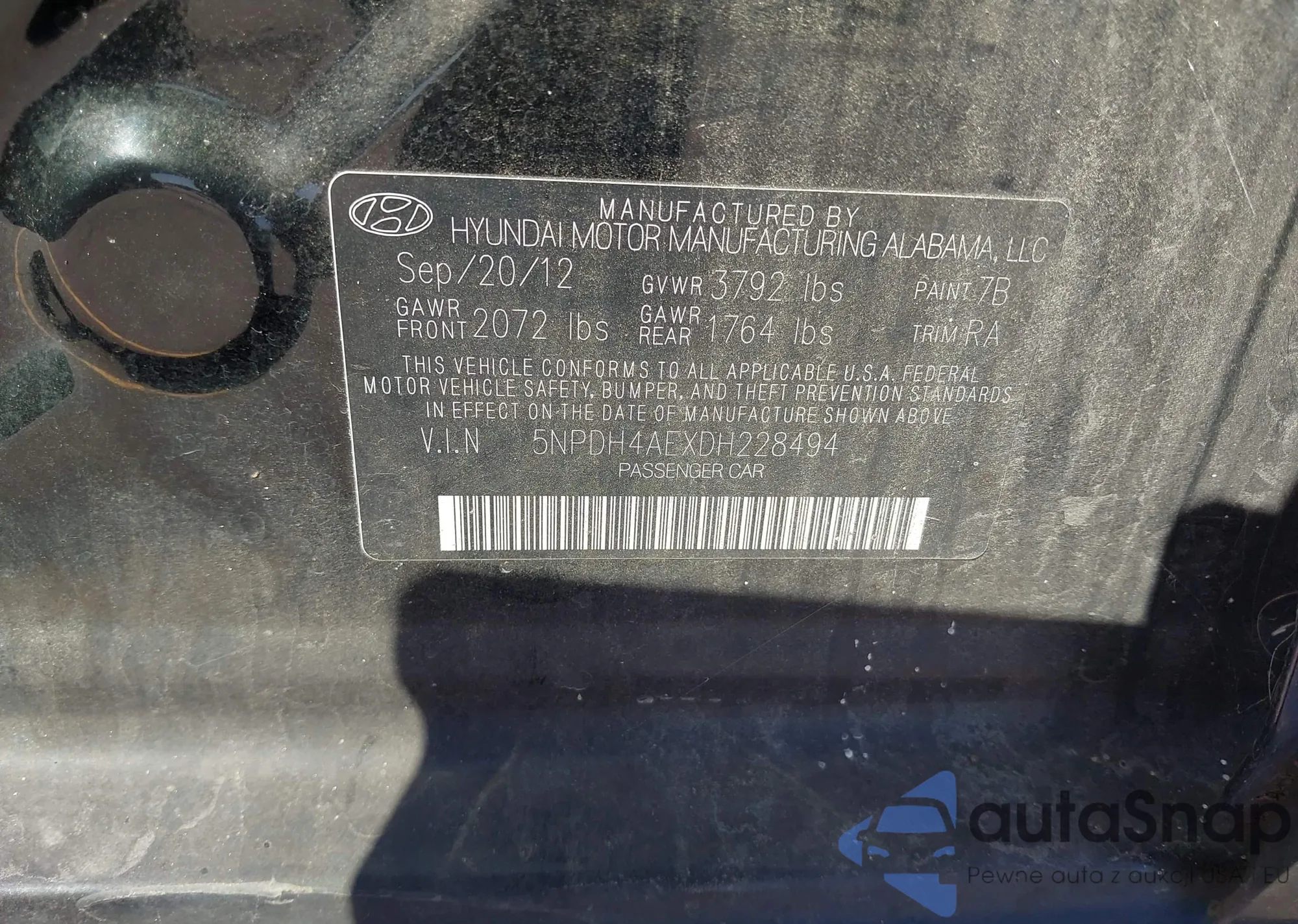 • VIN 5NPDH4AEXDH228494