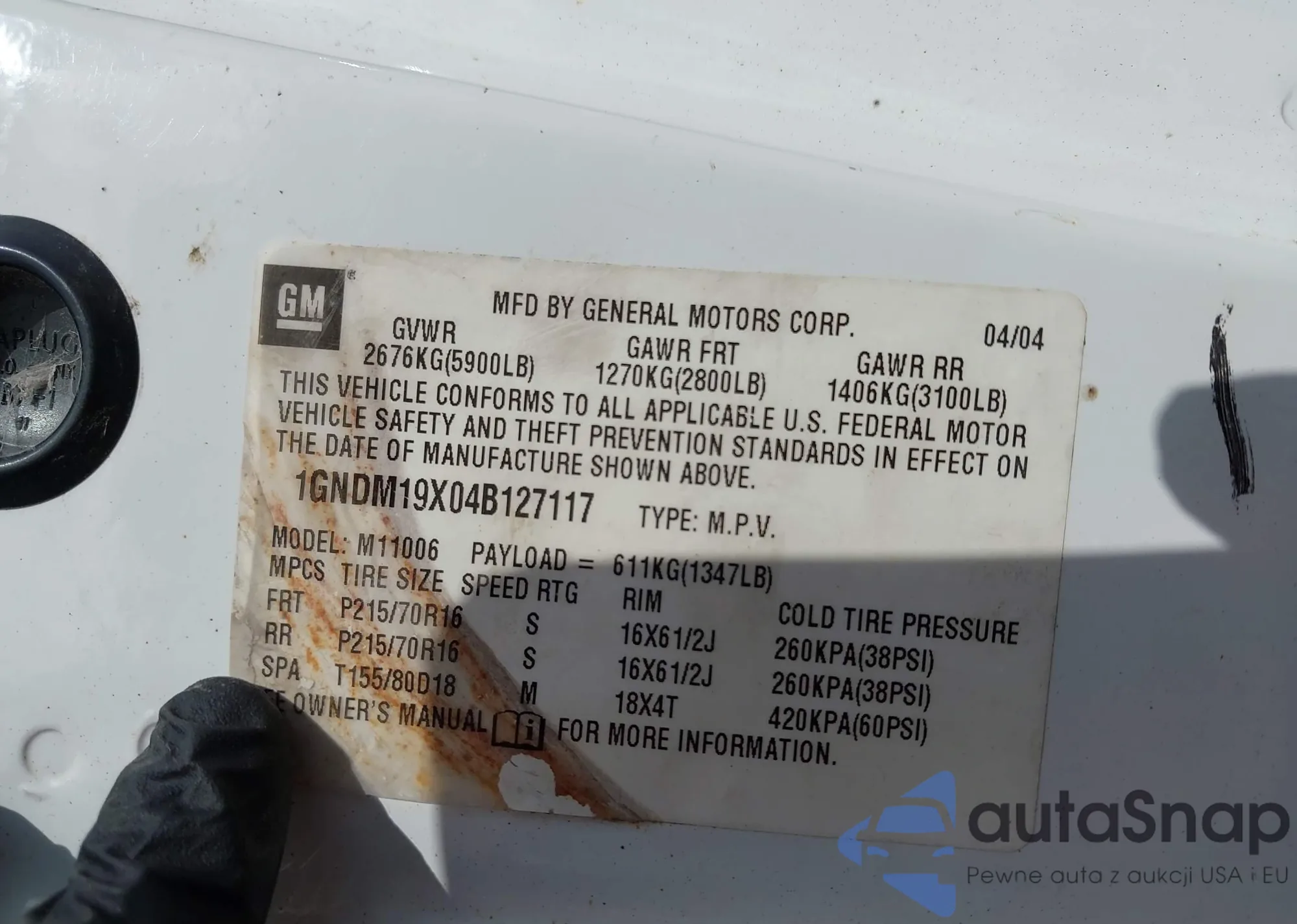 • VIN 1GNDM19X04B127117