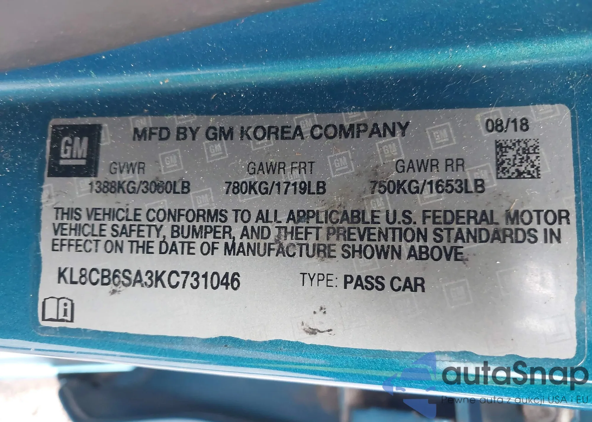 • VIN KL8CB6SA3KC731046
