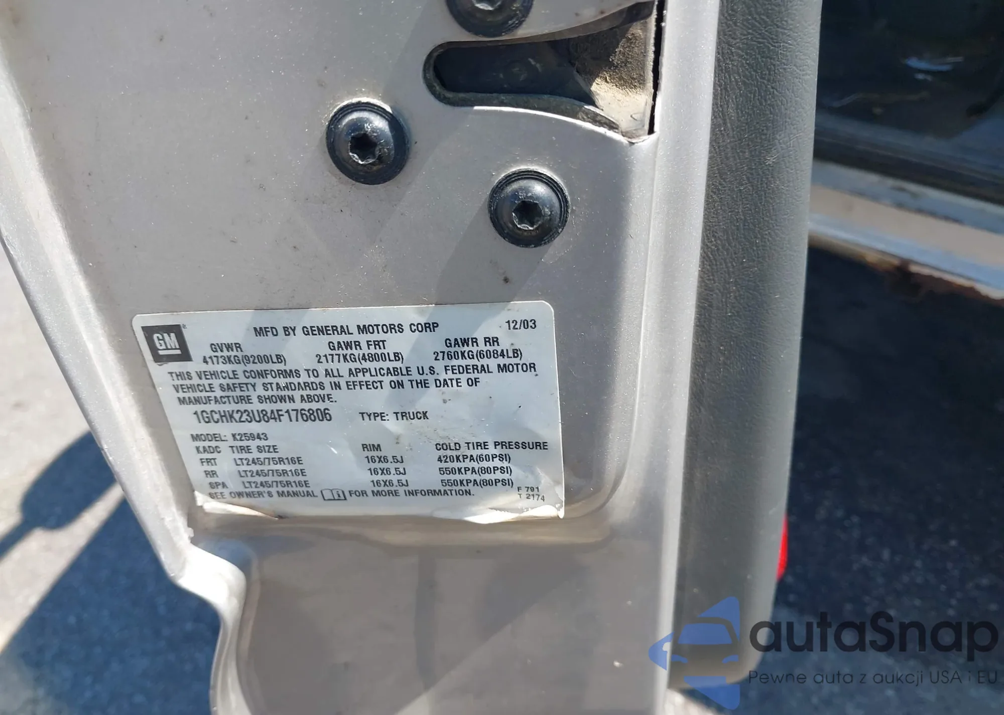 LOT: 43030117 VIN: 1GCHK23U84F176806