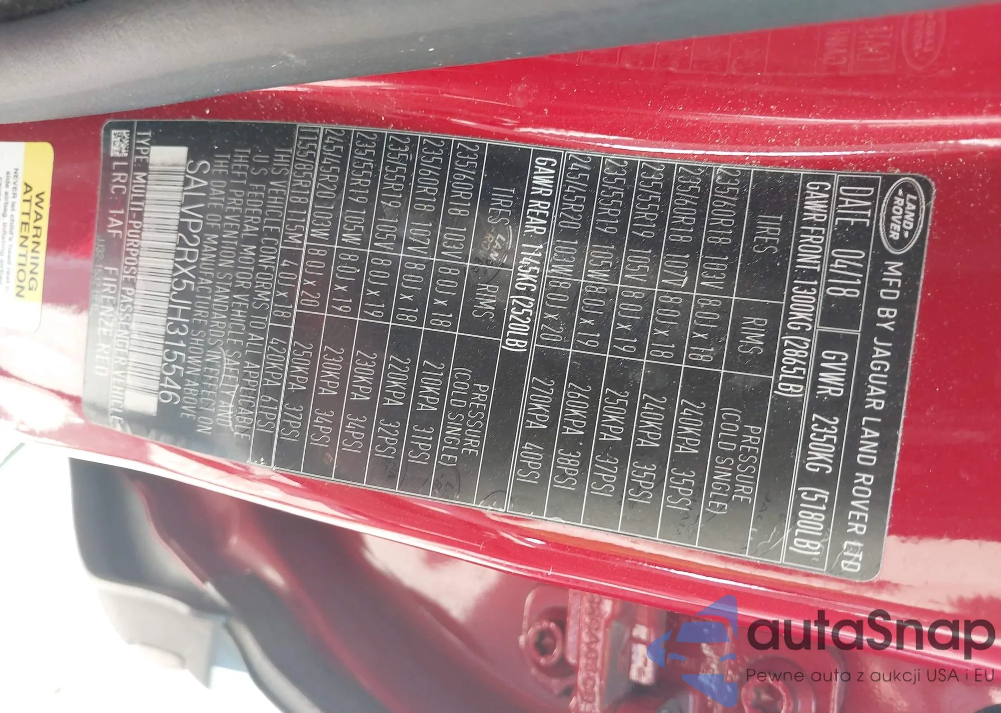 • VIN SALVP2RX5JH315546