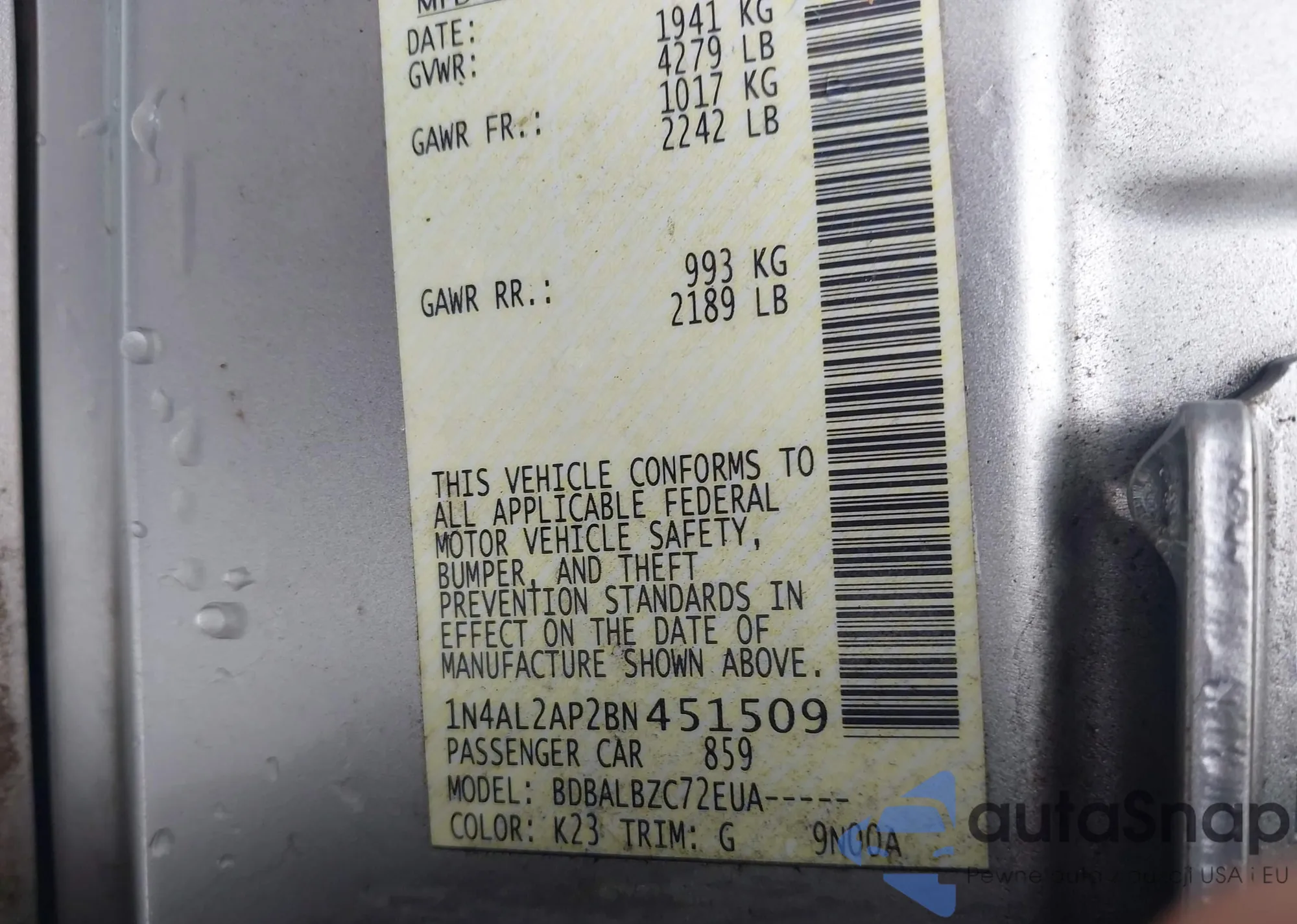 LOT: 43014080 VIN: 1N4AL2AP2BN451509