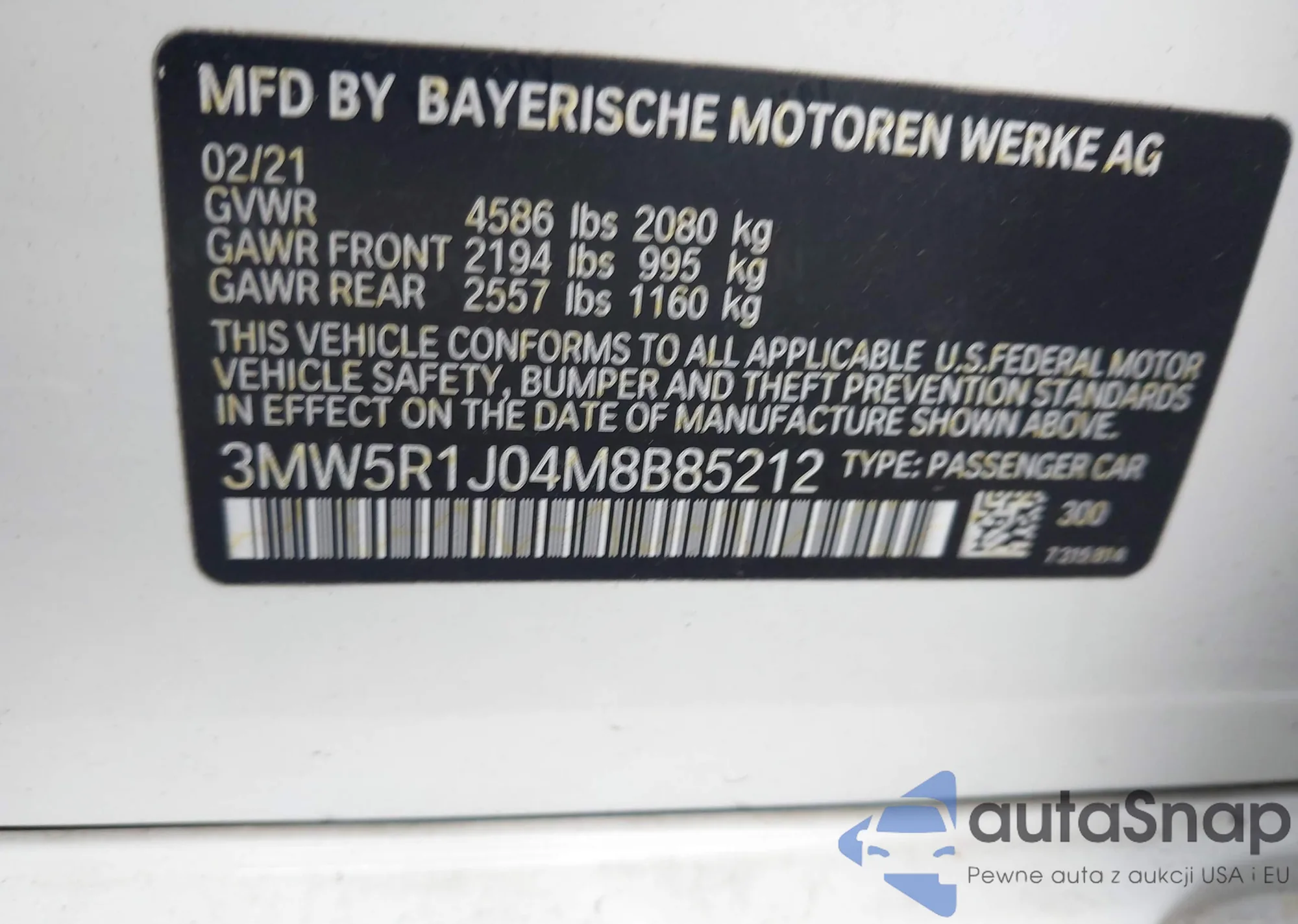 LOT: 43019544 VIN: 3MW5R1J04M8B85212