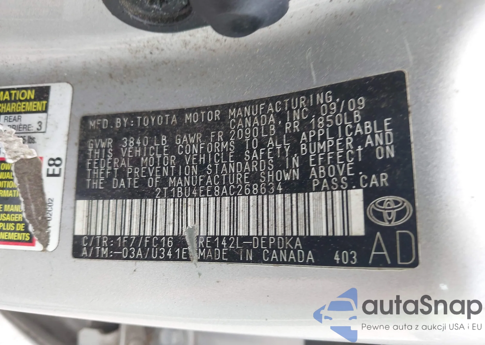 • VIN 2T1BU4EE8AC268634