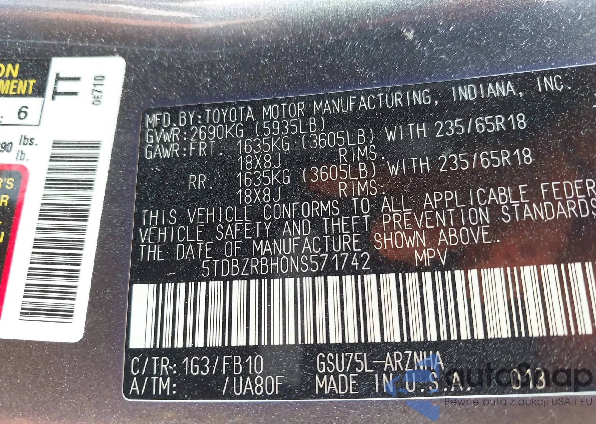 • VIN 5TDBZRBH0NS571742