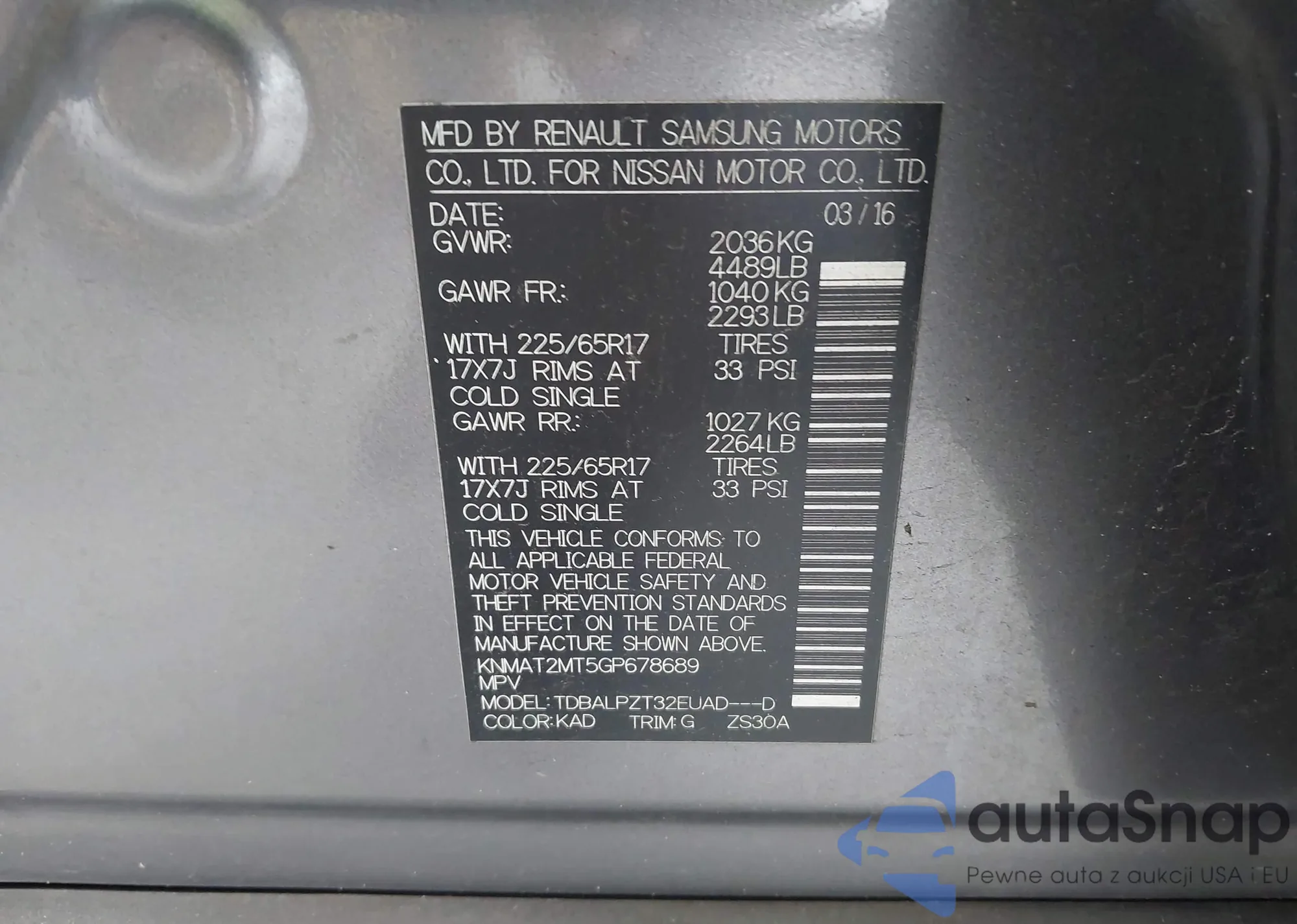 LOT: 43066975 VIN: JN8AF5MV6FT564236