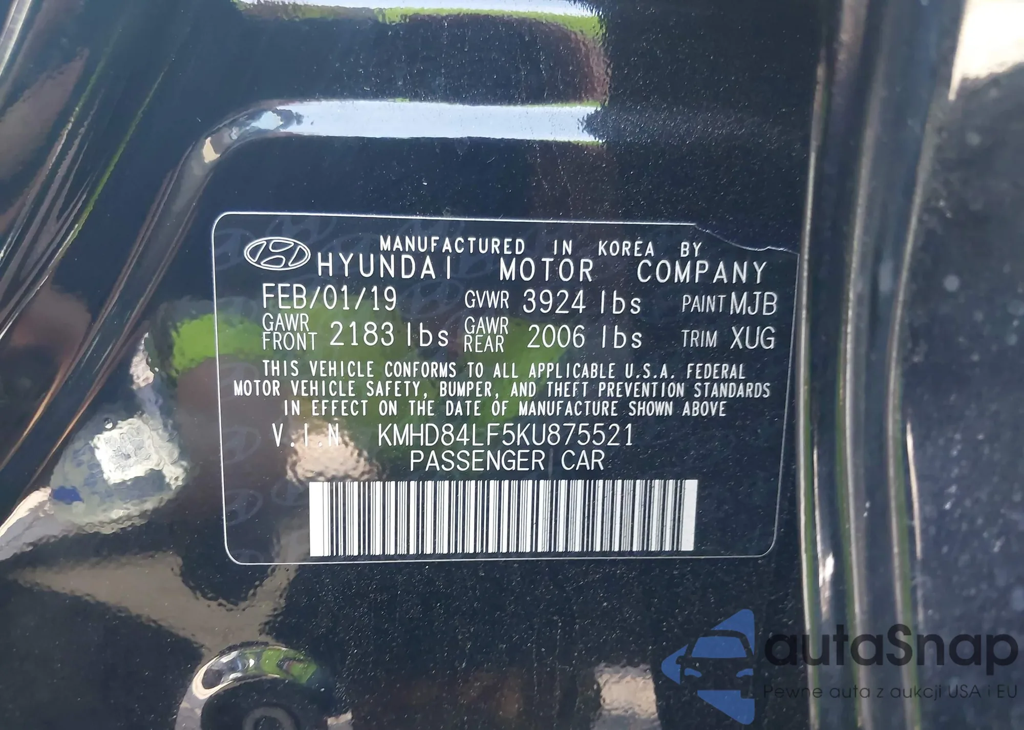 LOT: 42857151 VIN: KMHD84LF5KU875521