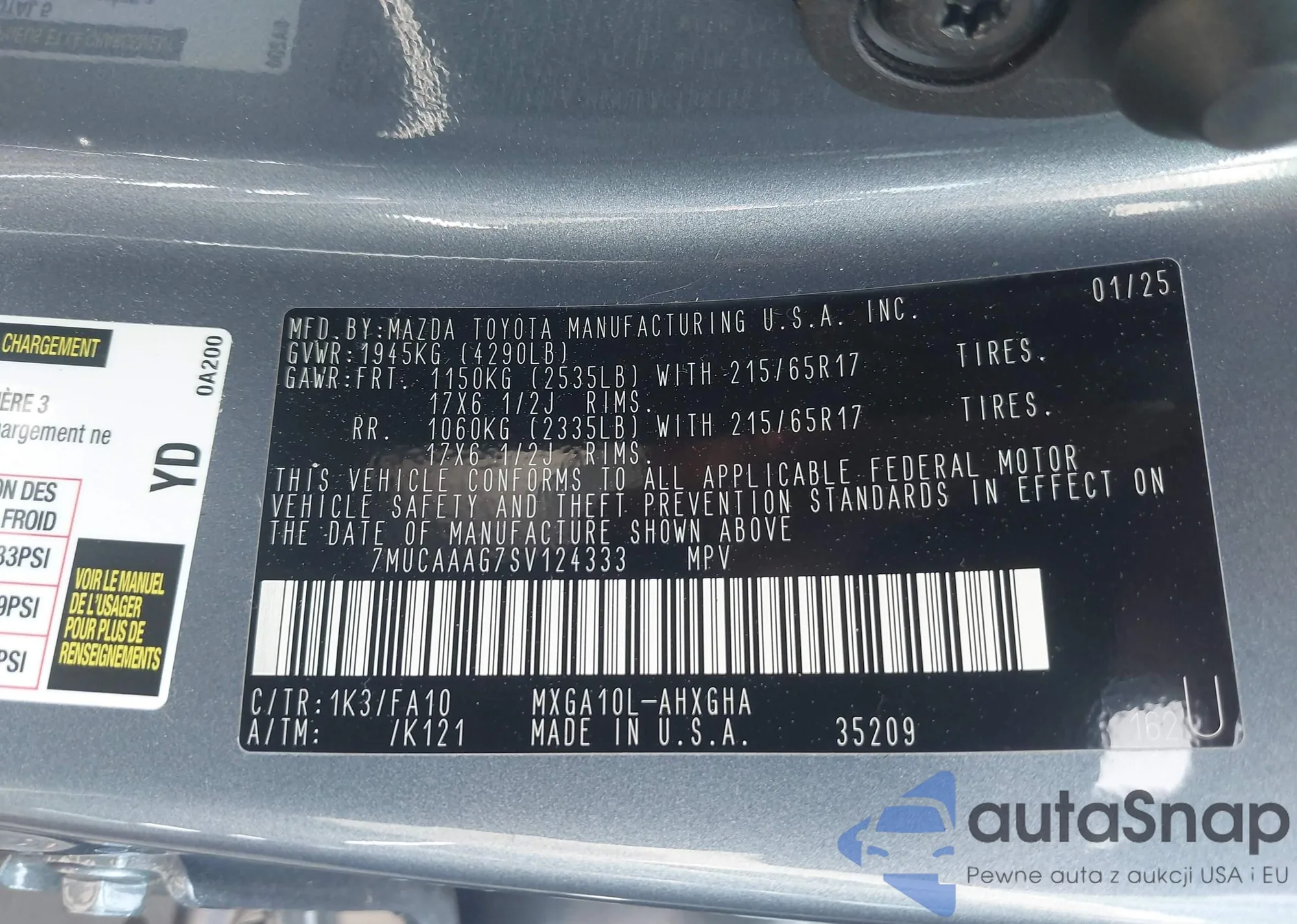 LOT: 42803025 VIN: 4T1DA1AB0MU003897