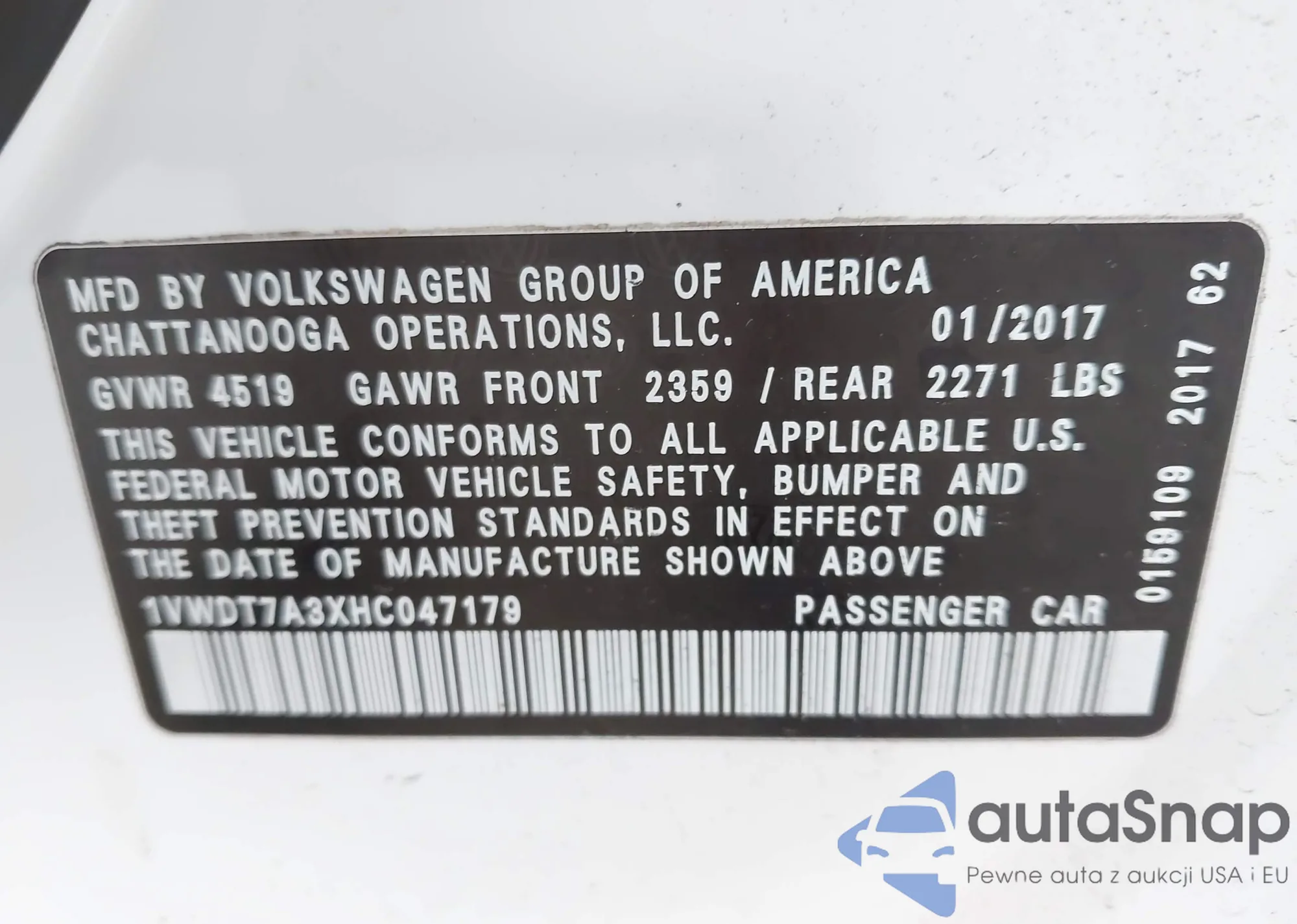 • VIN 1VWDT7A3XHC047179