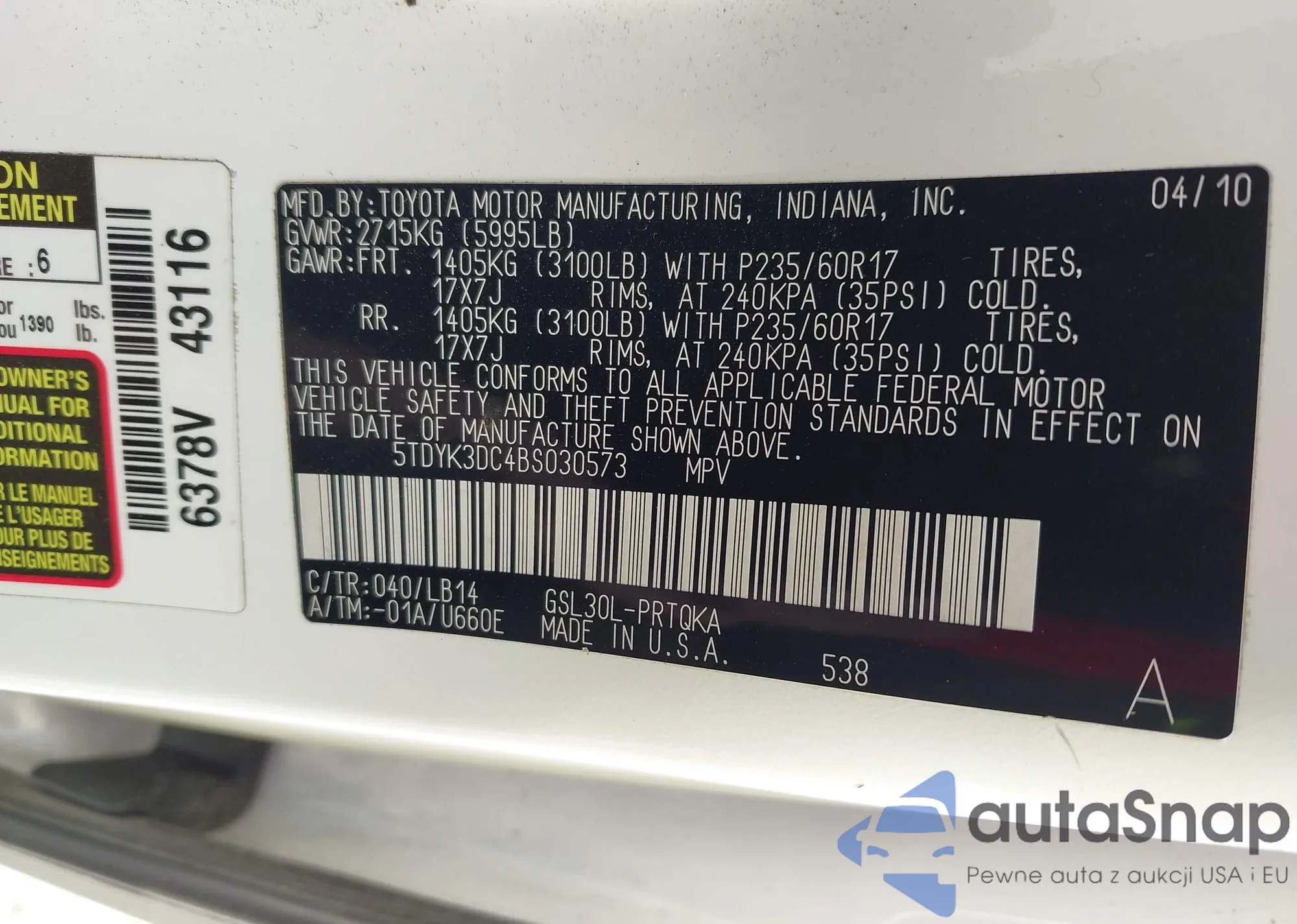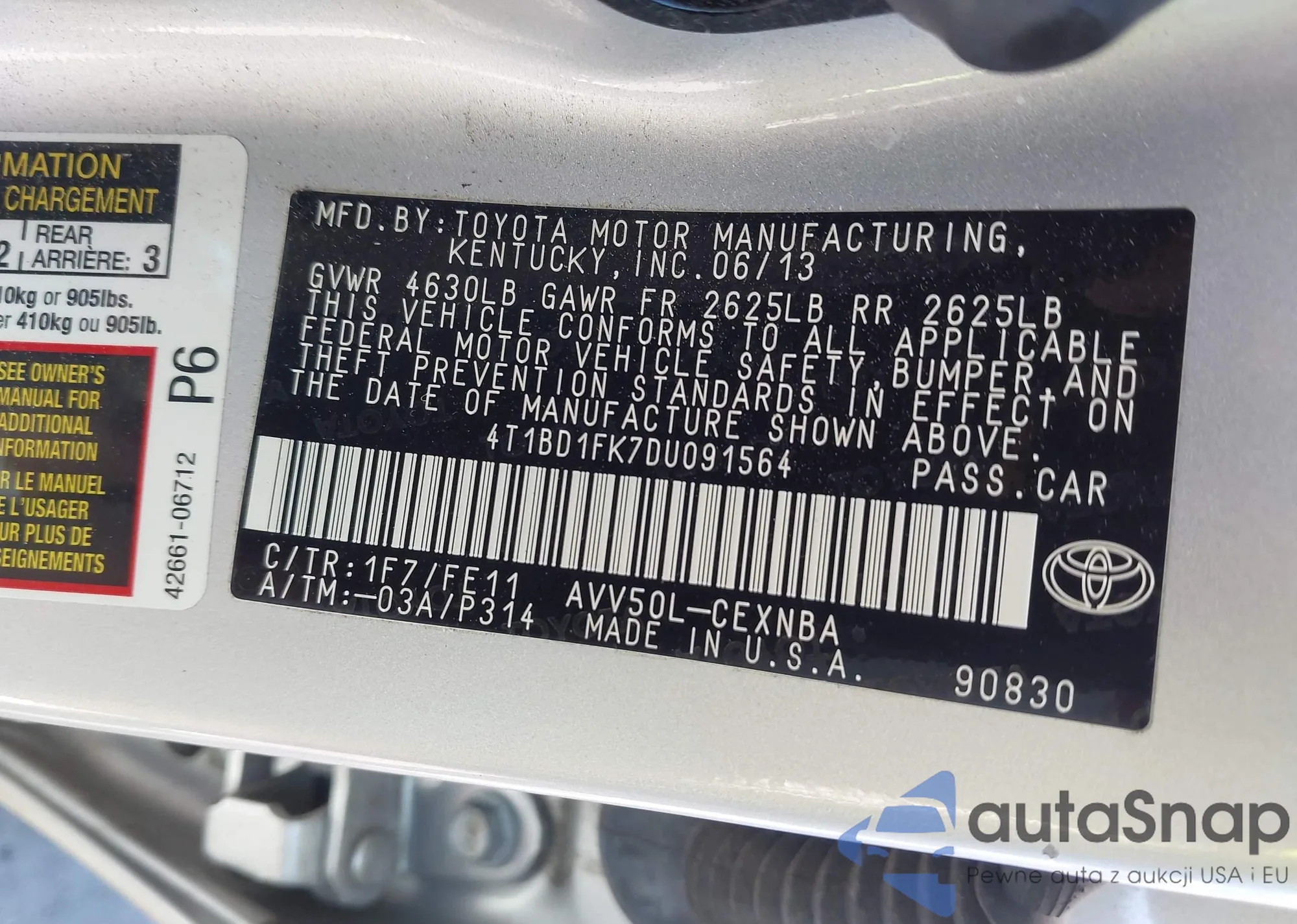 • VIN 4T1DA1AB0MU003897