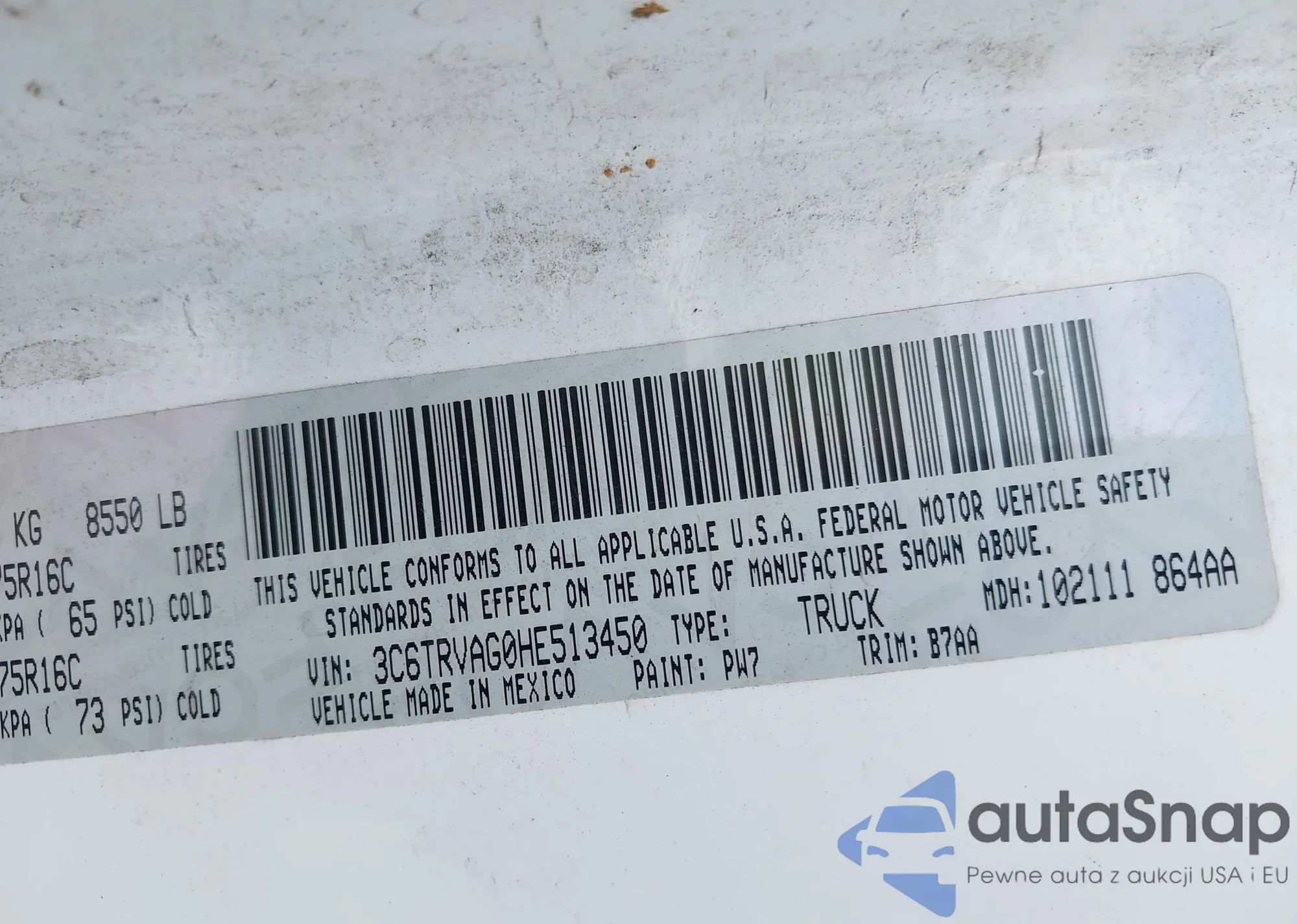 • VIN 3C6TRVAG0HE513450