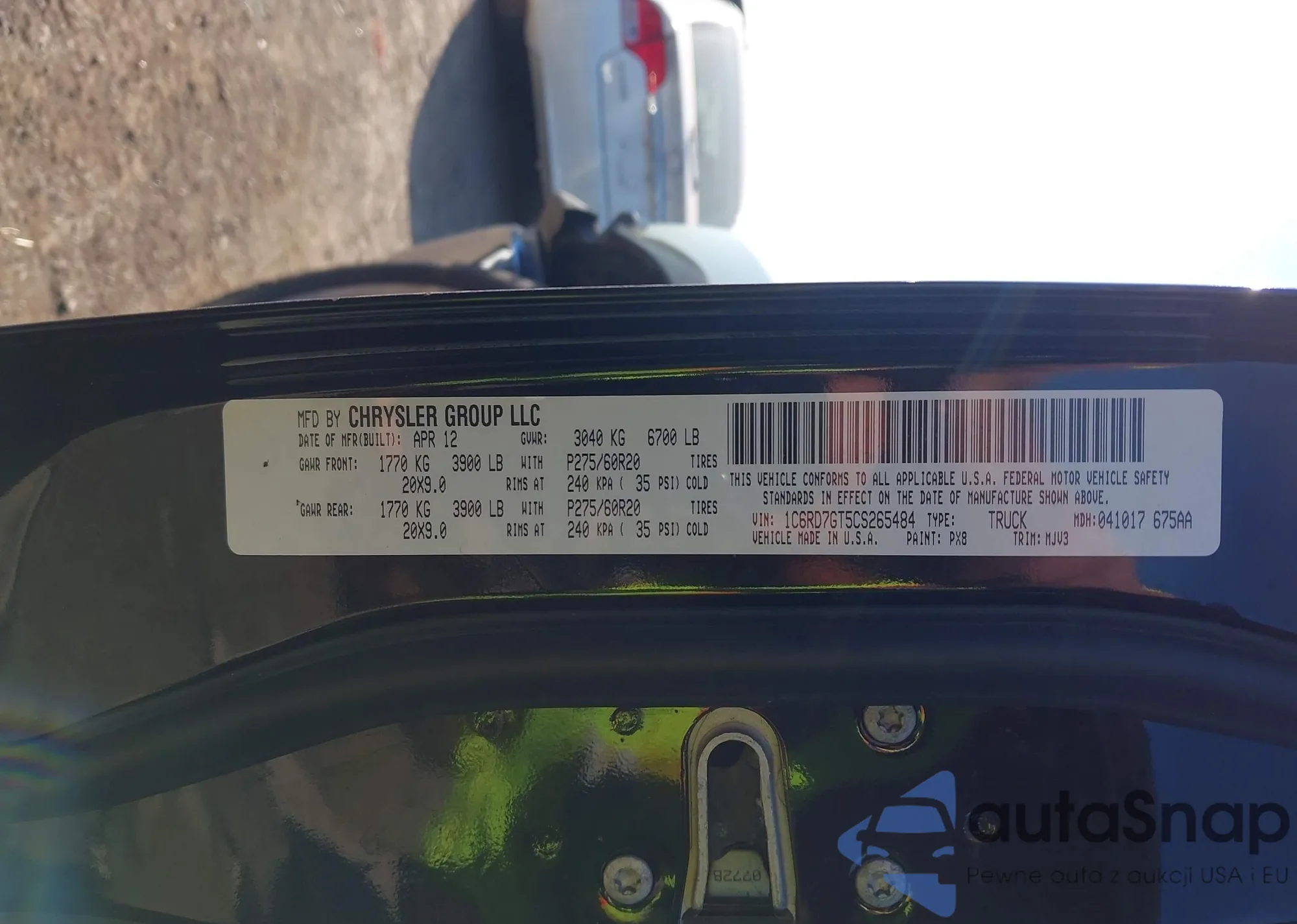 • VIN 1C6RD7GT5CS265484