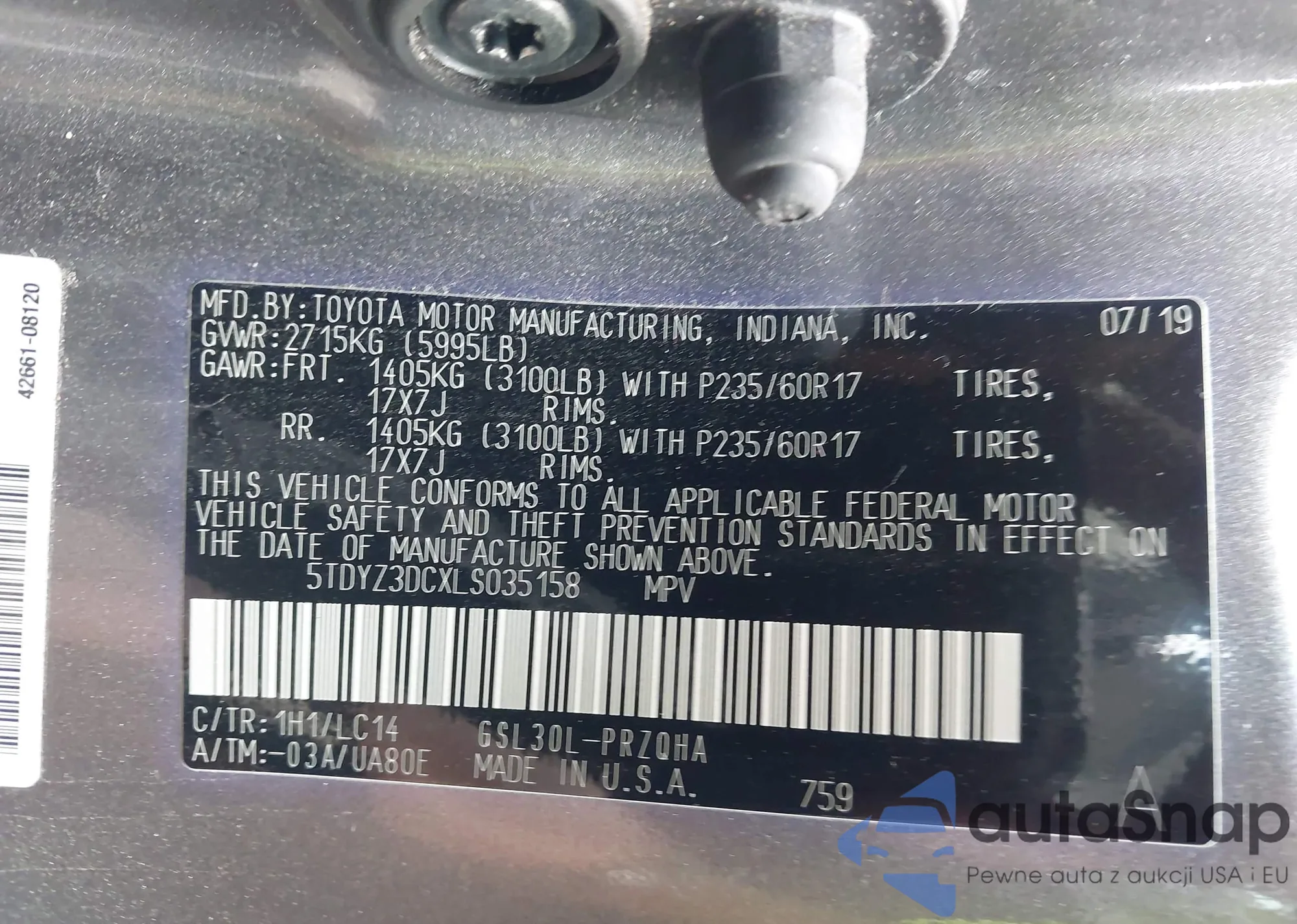 LOT: 42956429 VIN: 5TDYZ3DCXLS035158