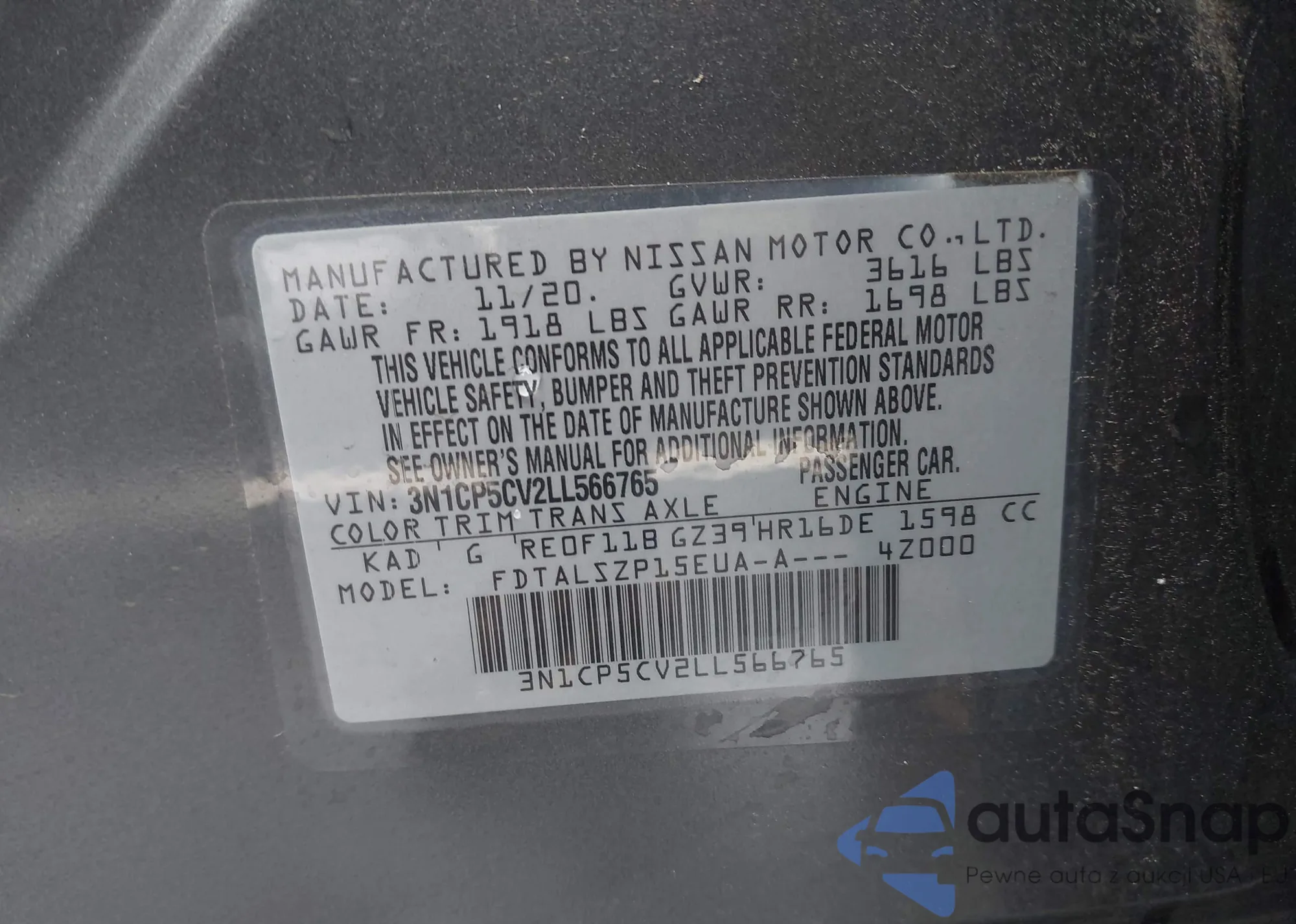• VIN 3N1CN7AP4FL956356