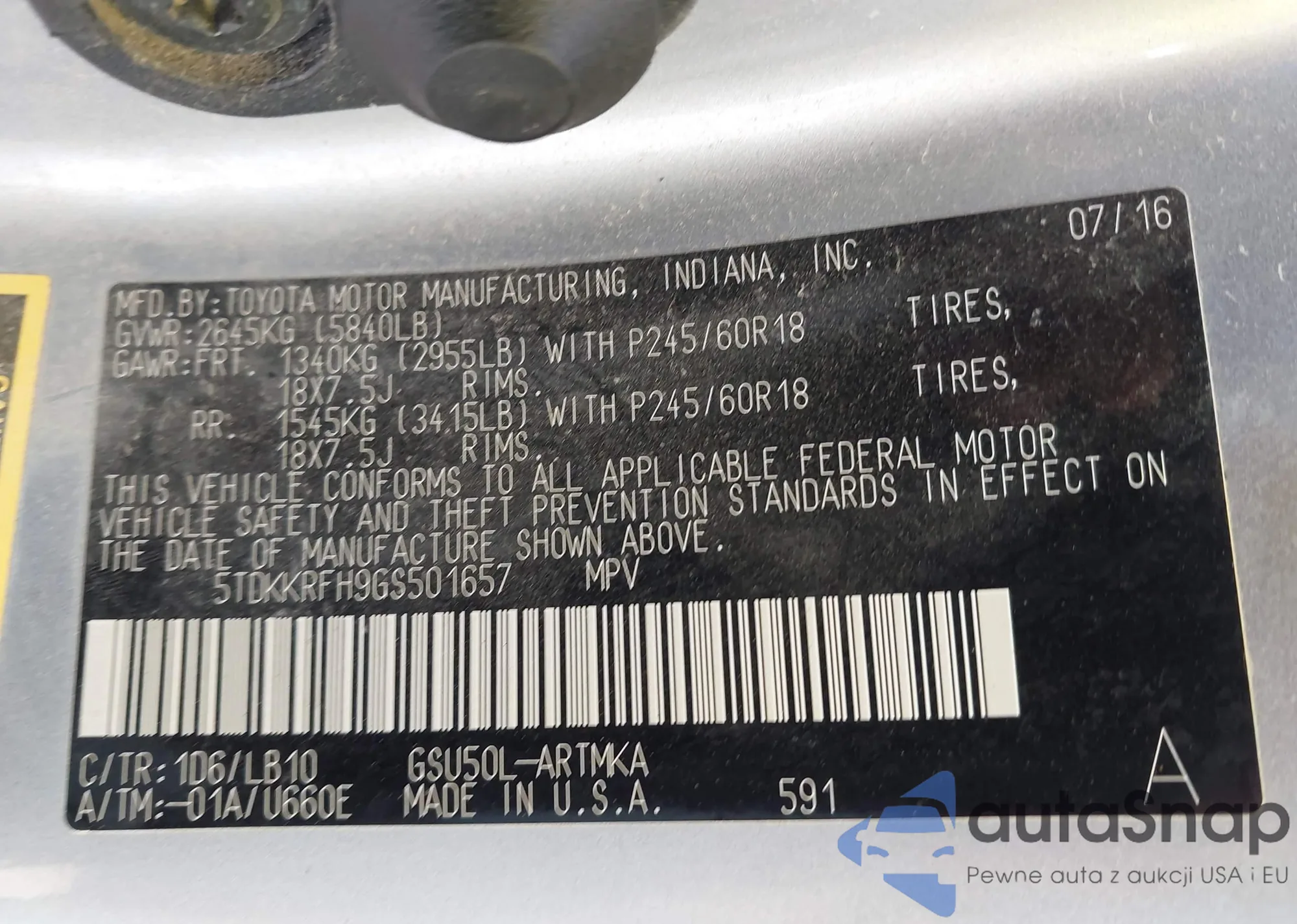 LOT: 43240491 VIN: 5TDKKRFH9GS501657