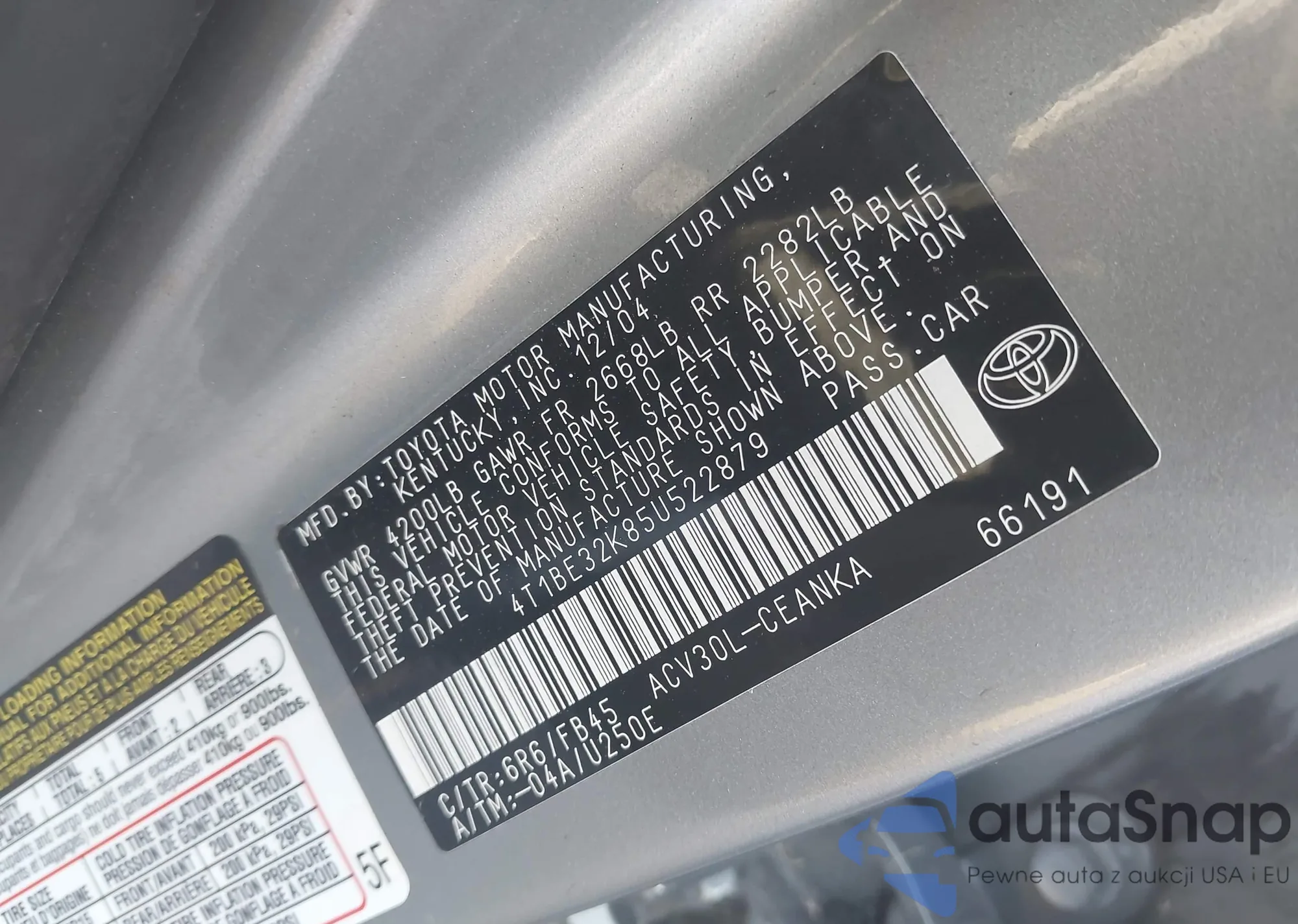 • VIN 4T1BE32K85U522879