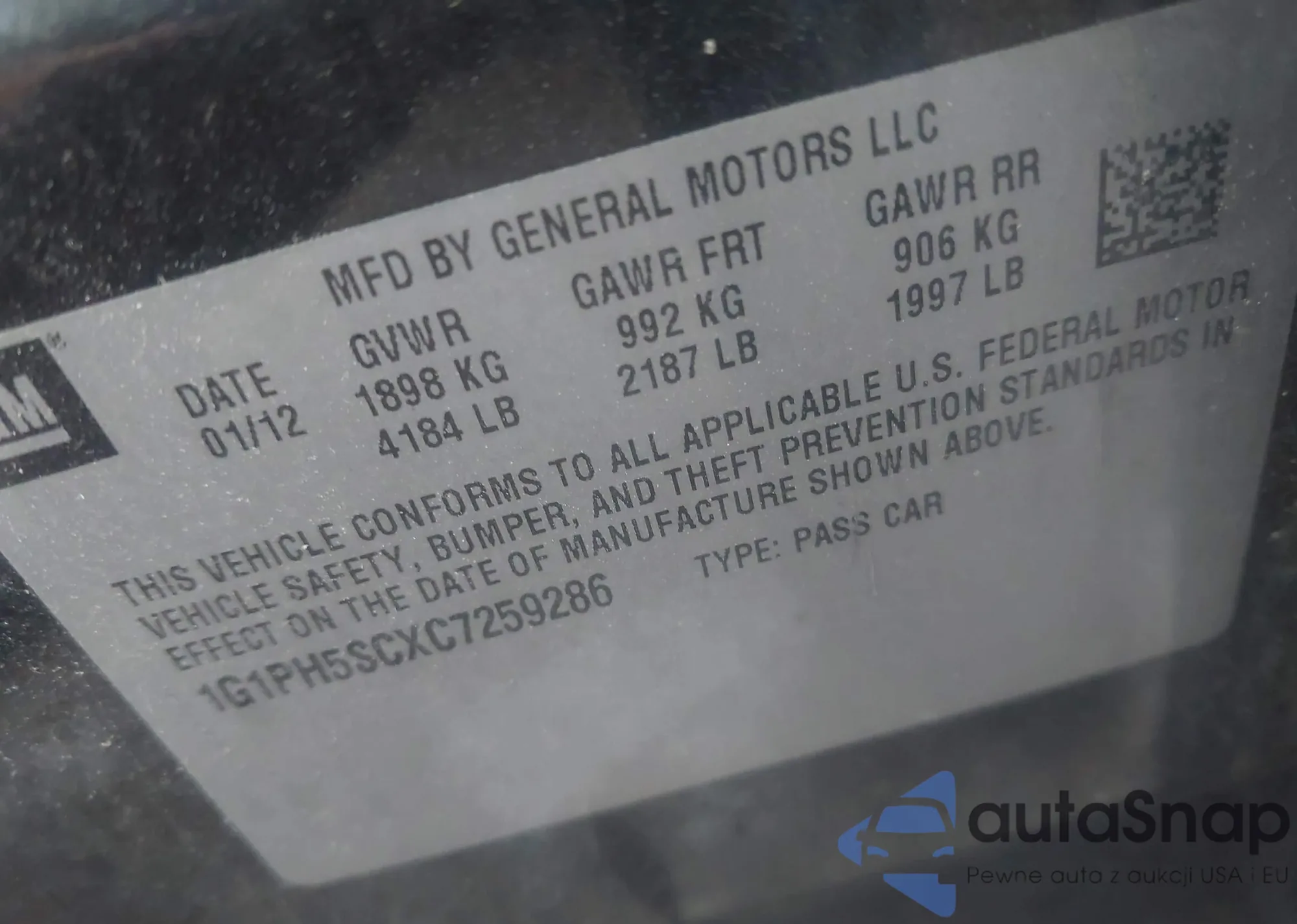 LOT: 43283961 VIN: 1G1PH5SCXC7259286