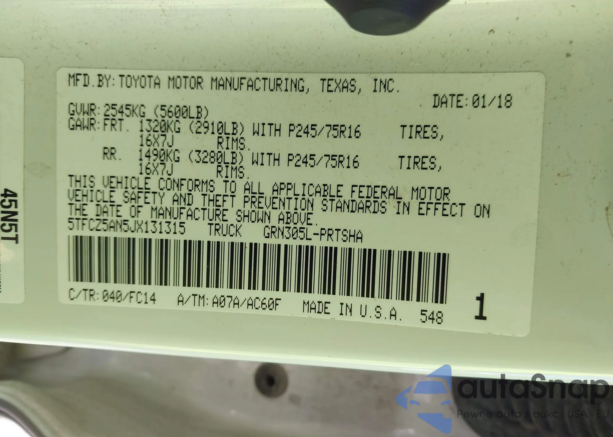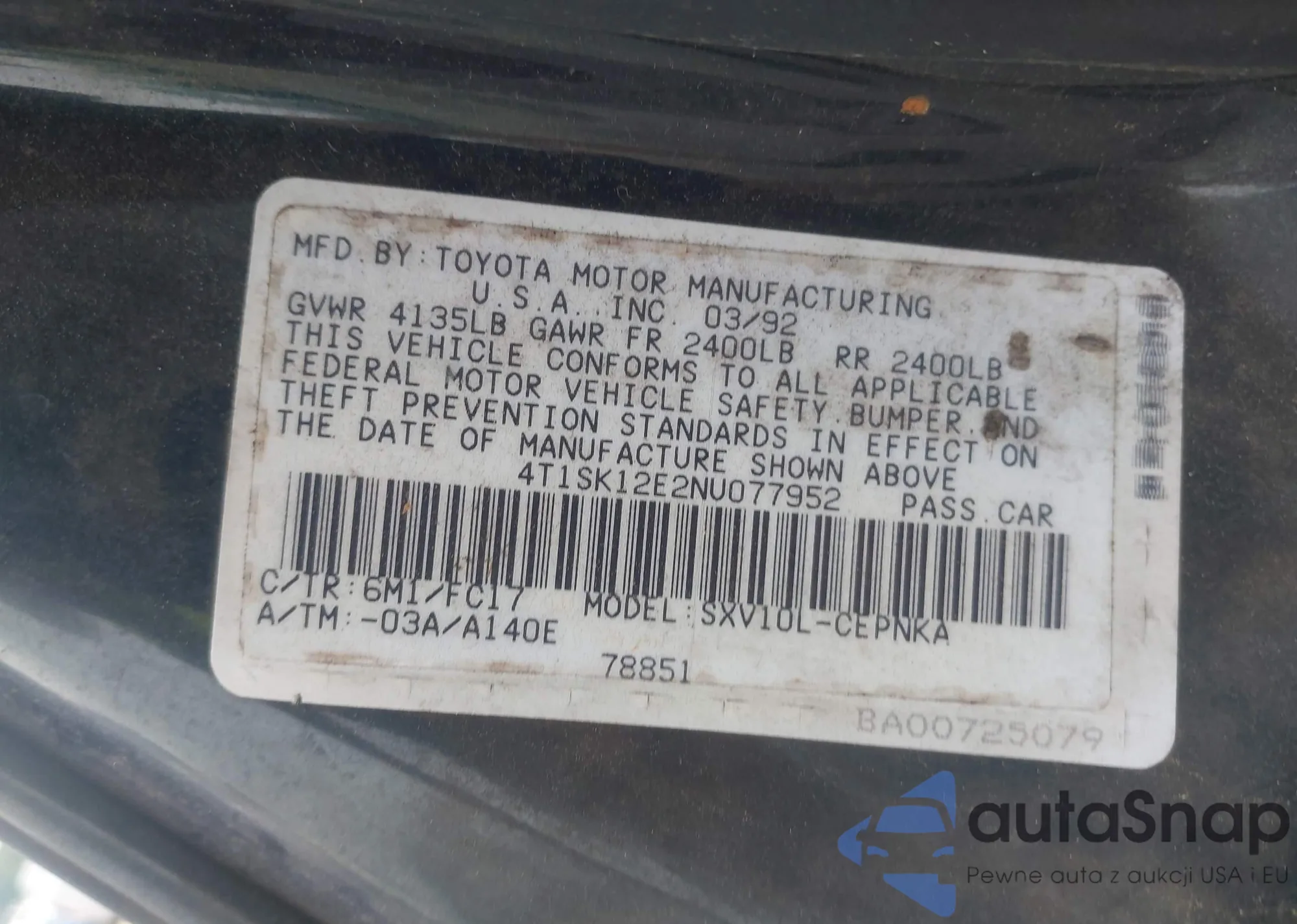 • VIN 4T1SK12E2NU077952