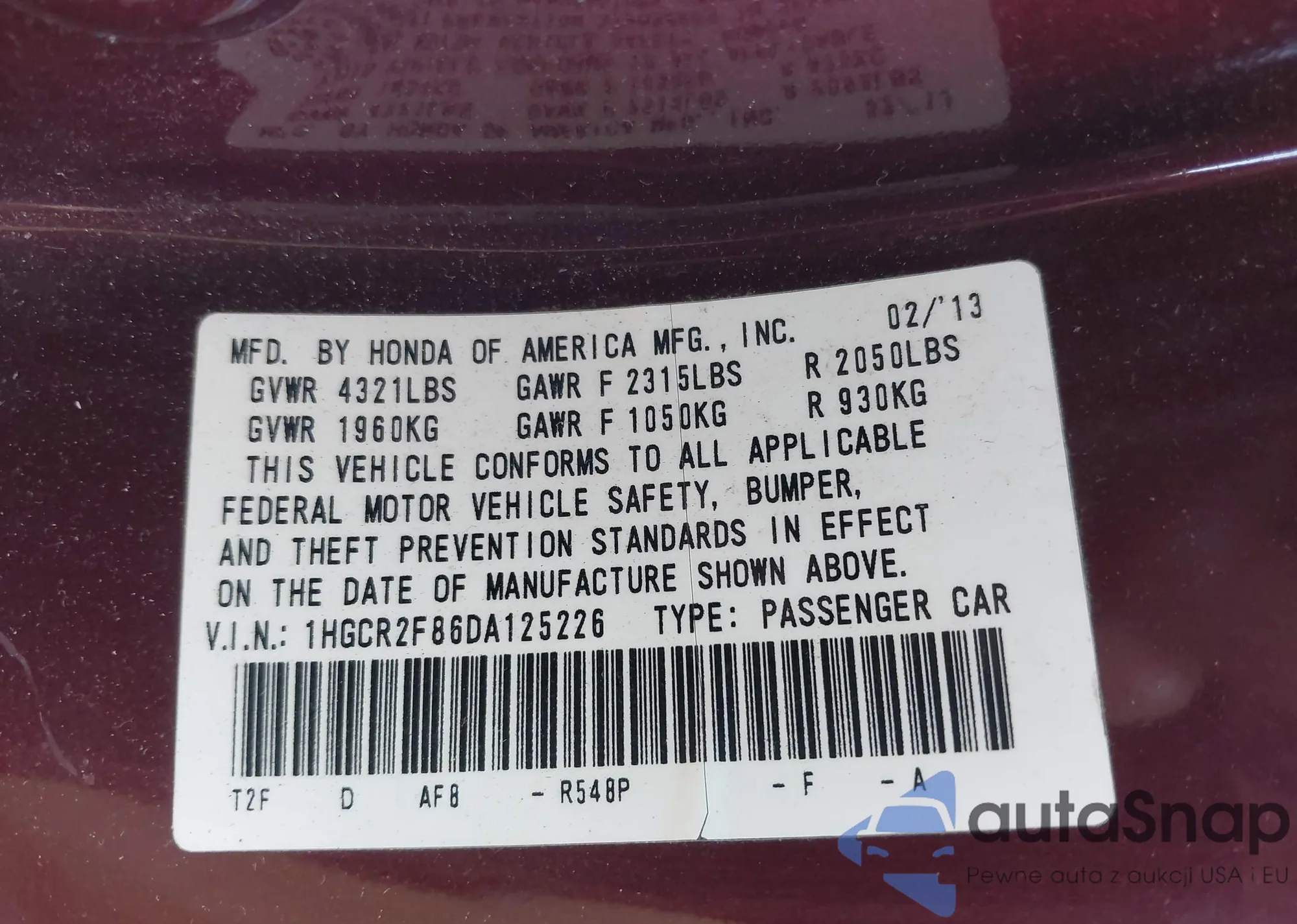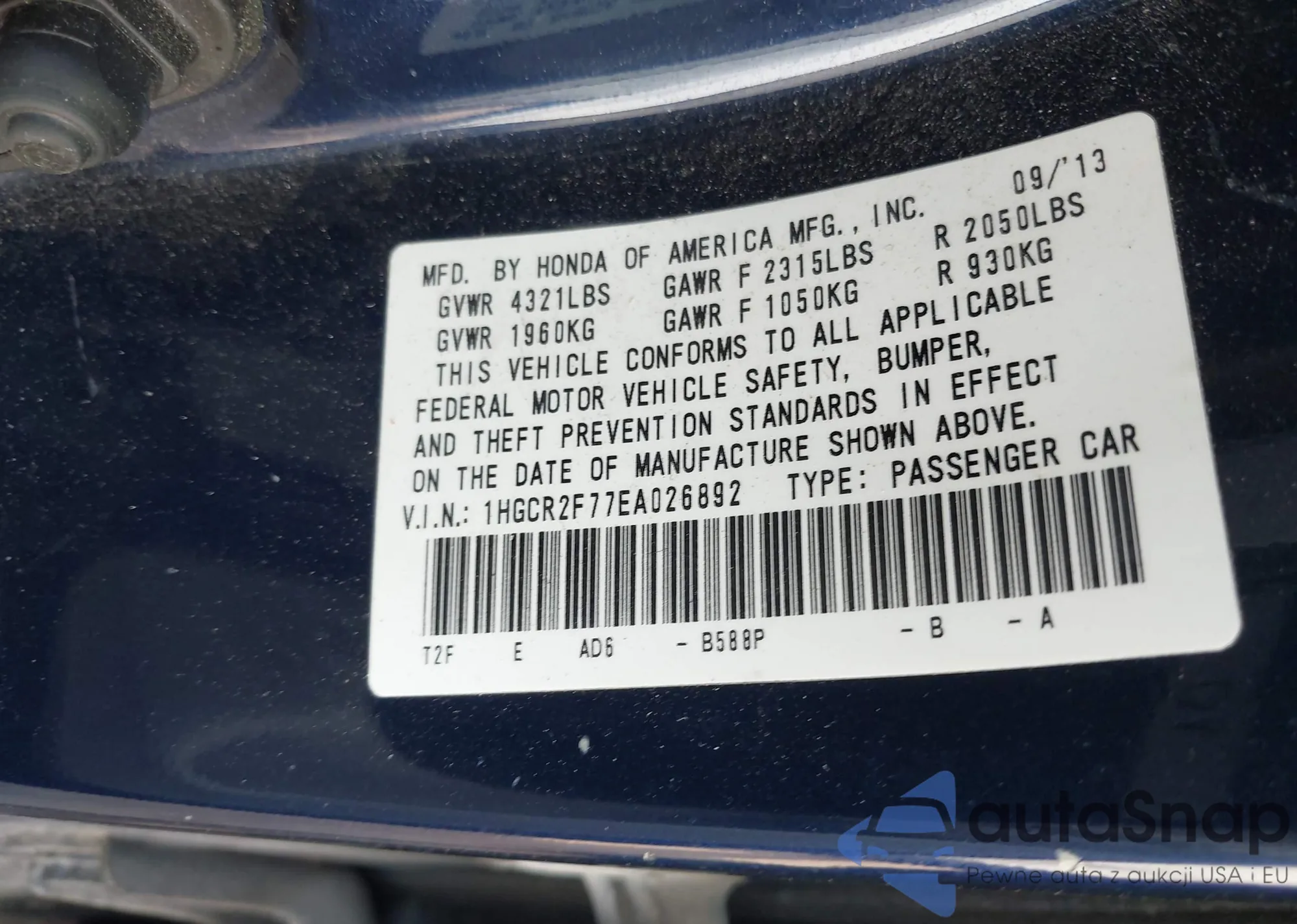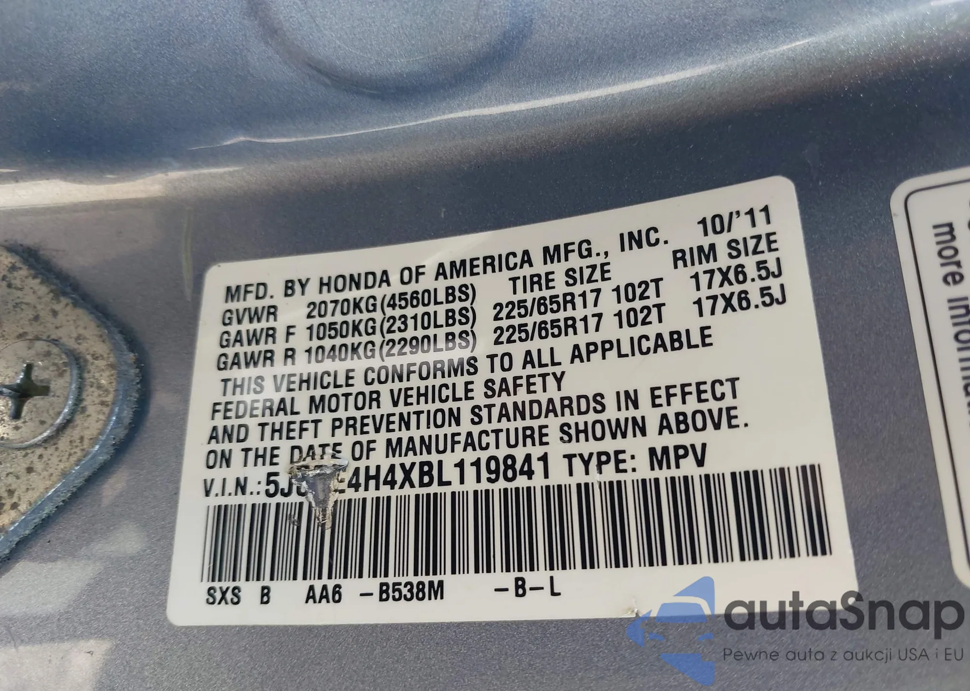 • VIN 5J6RE4H4XBL119841