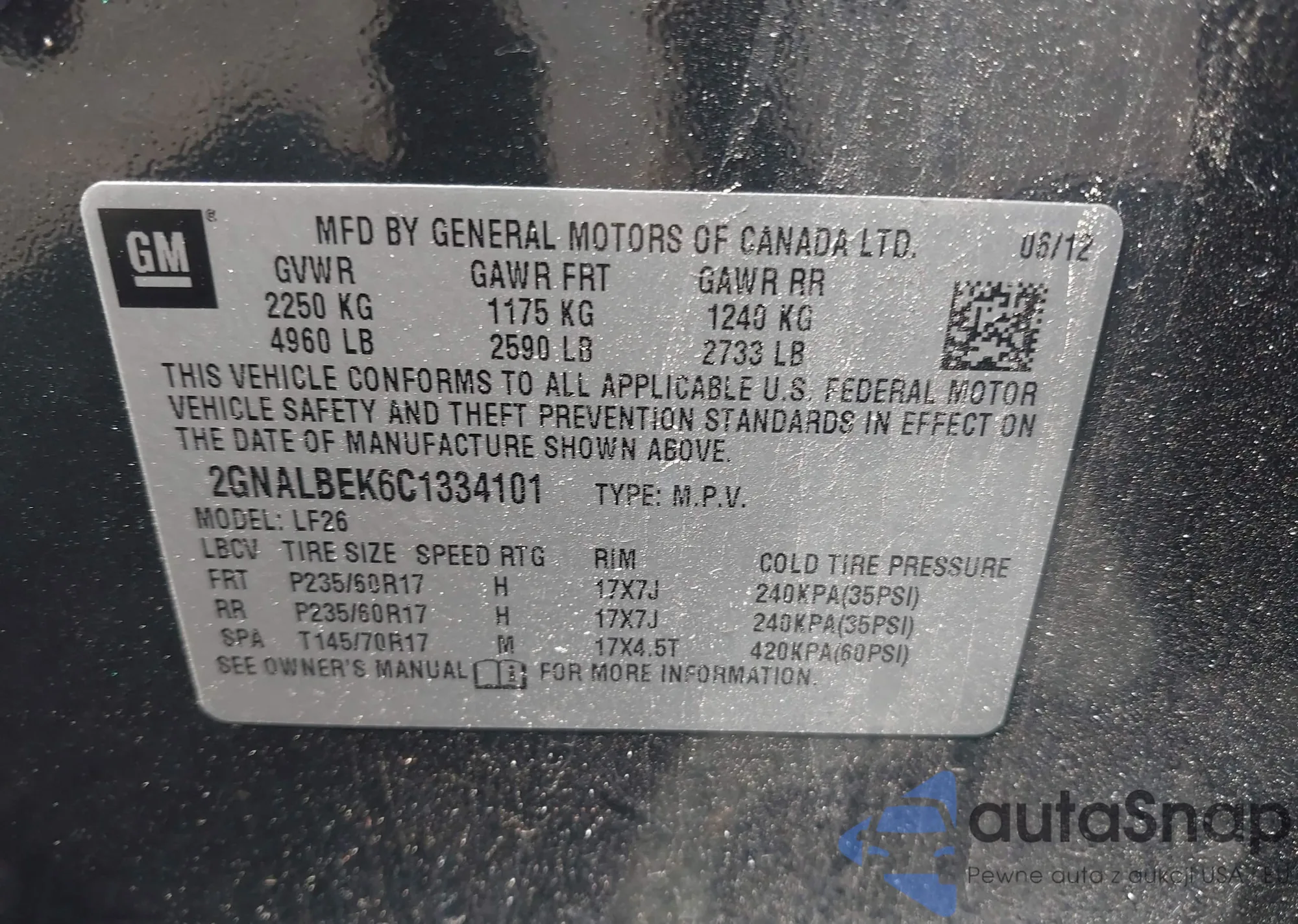 • VIN 2GNALBEK6C1334101