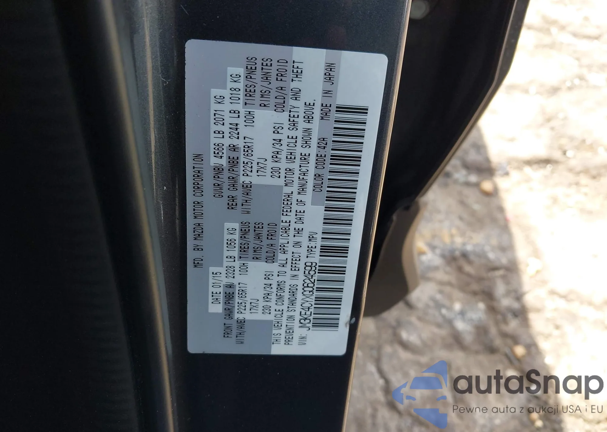 LOT: 42932783 VIN: JM3KE4CYXG0624599