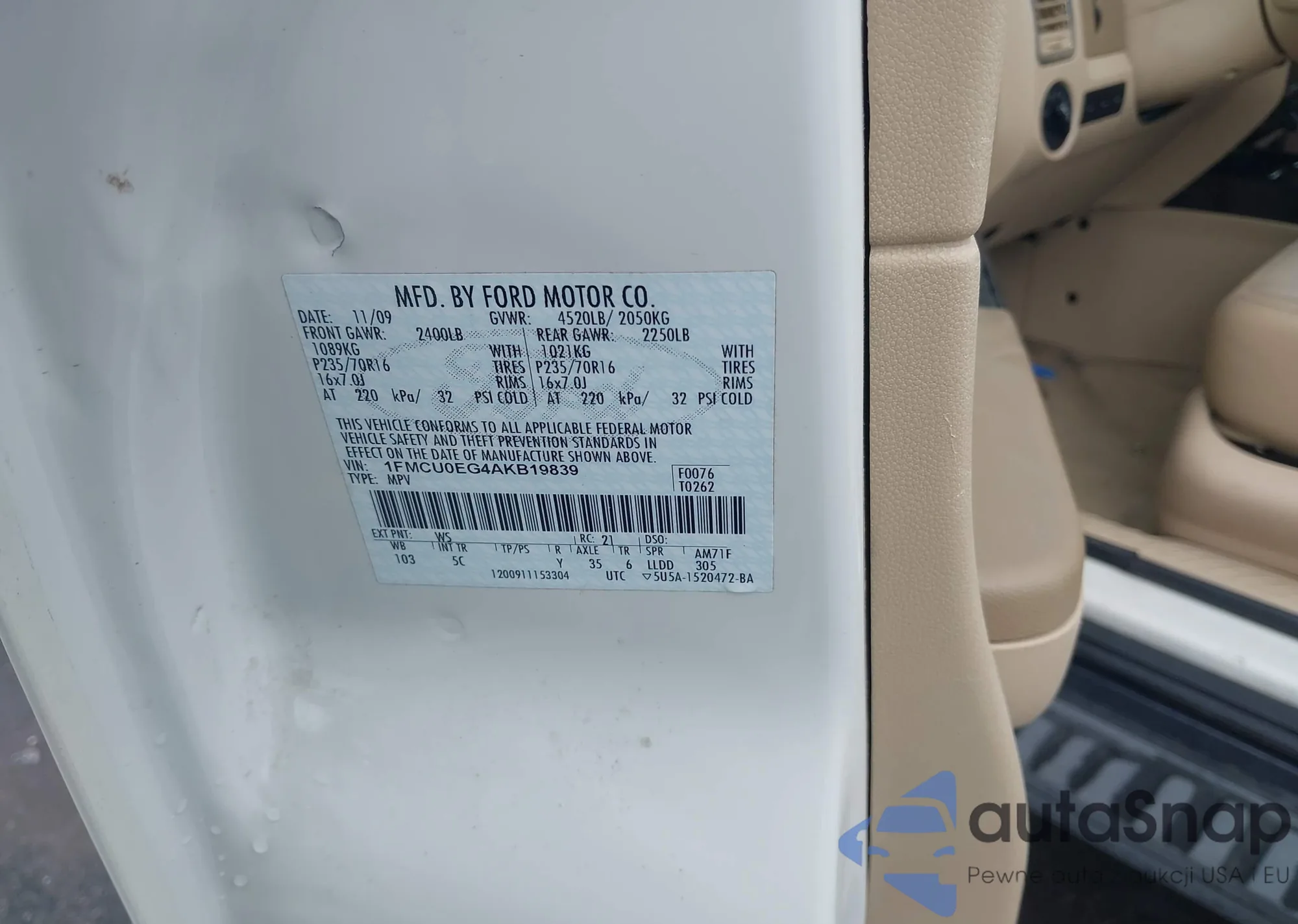 LOT: 42961448 VIN: 1FMCU0EG4AKB19839