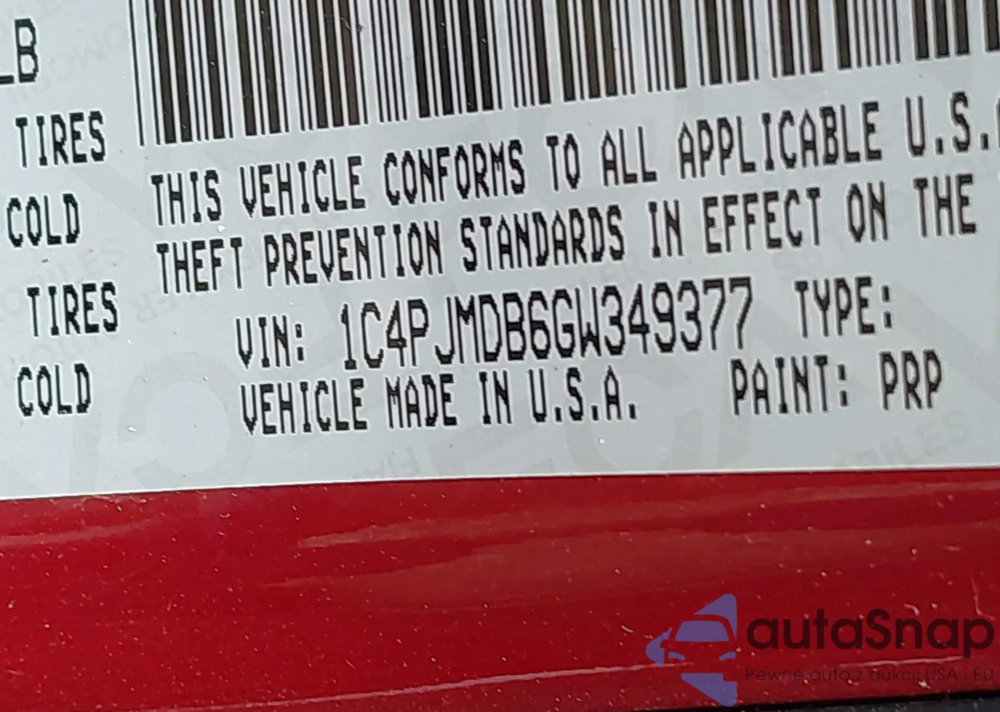 • VIN 1C4PJMDB6GW349377