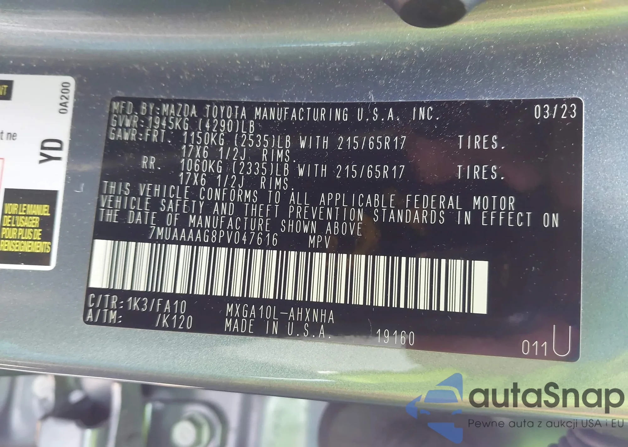 LOT: 43015926 VIN: 7MUAAAAG8PV047616