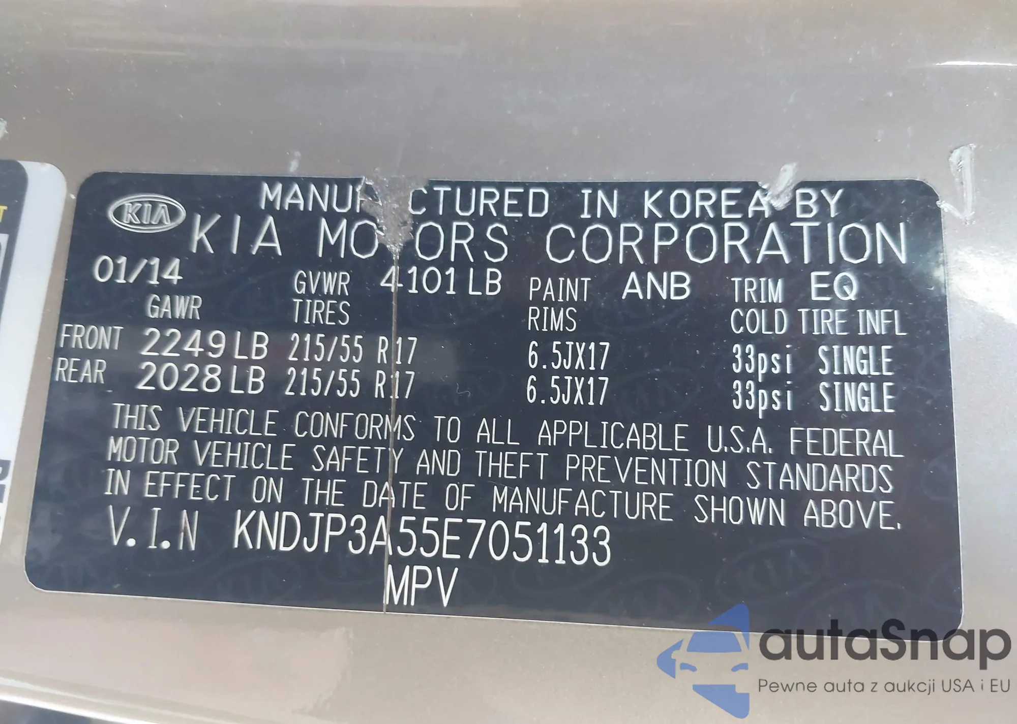 • VIN KNAFU4A26B5406650
