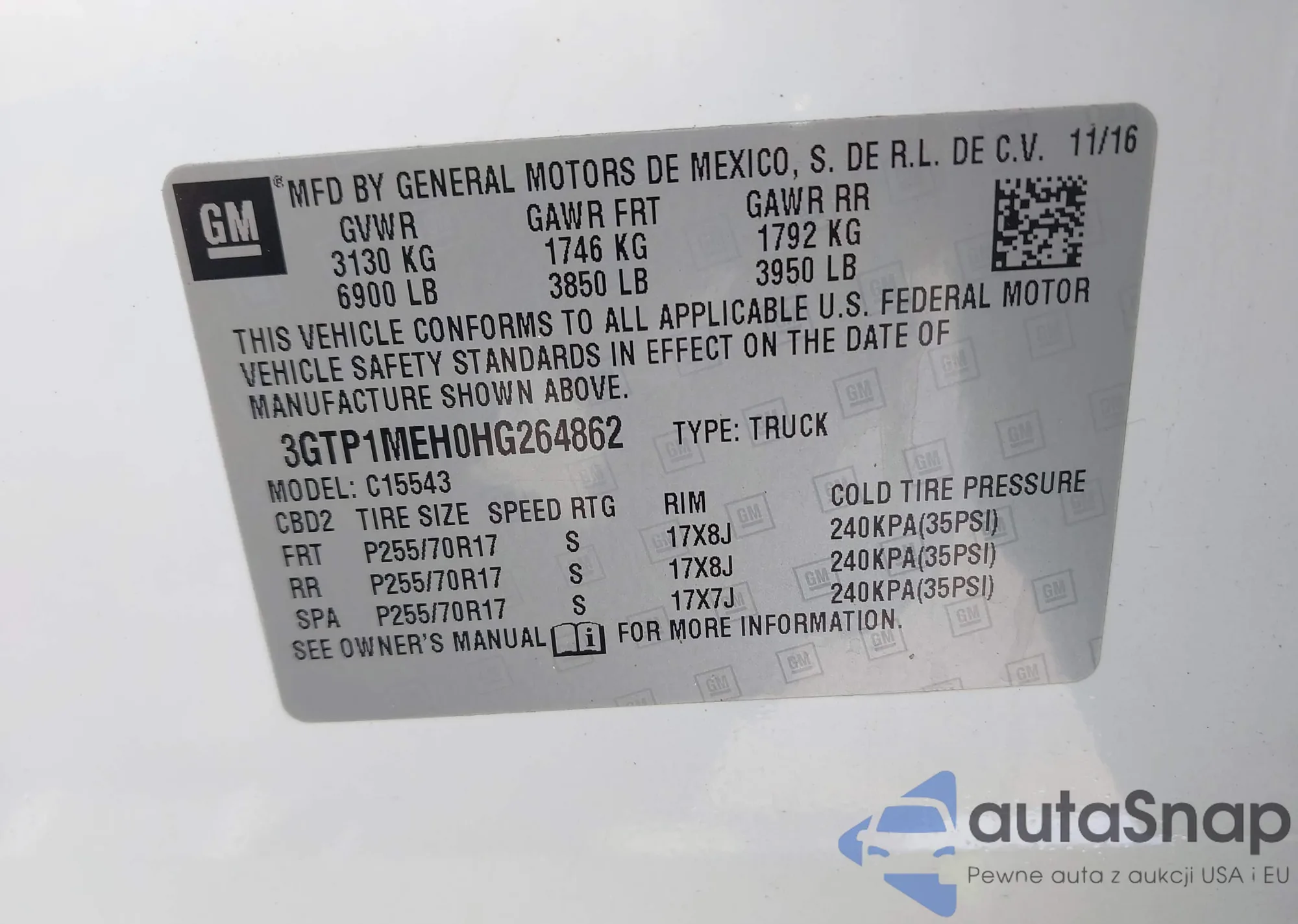 LOT: 43053679 VIN: 1GNSK3ECXFR685336