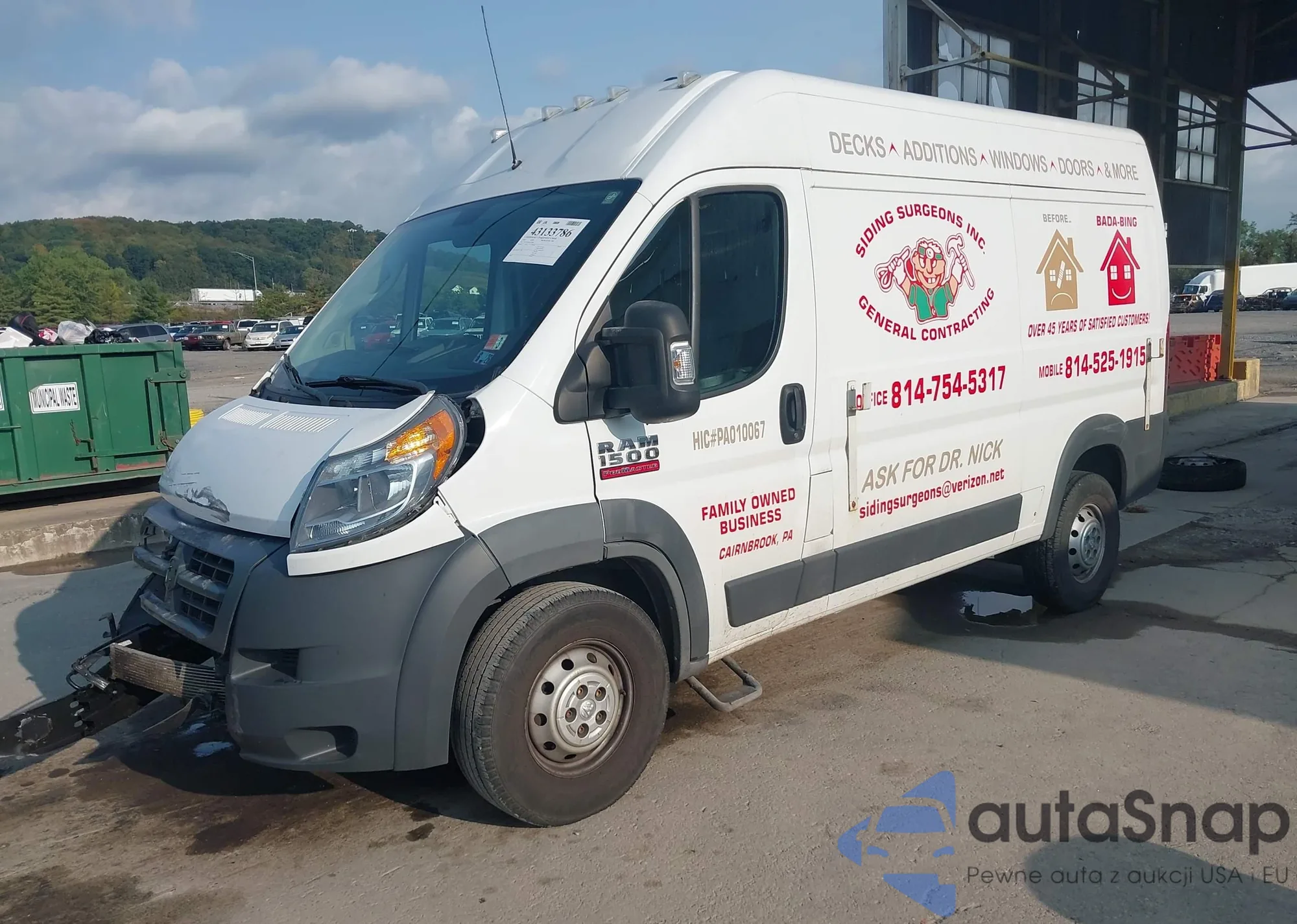 2018 Ram Promaster 1500 High Roof 136 Wb from USA, damaged, VIN 3C6TRVBG0JE157988