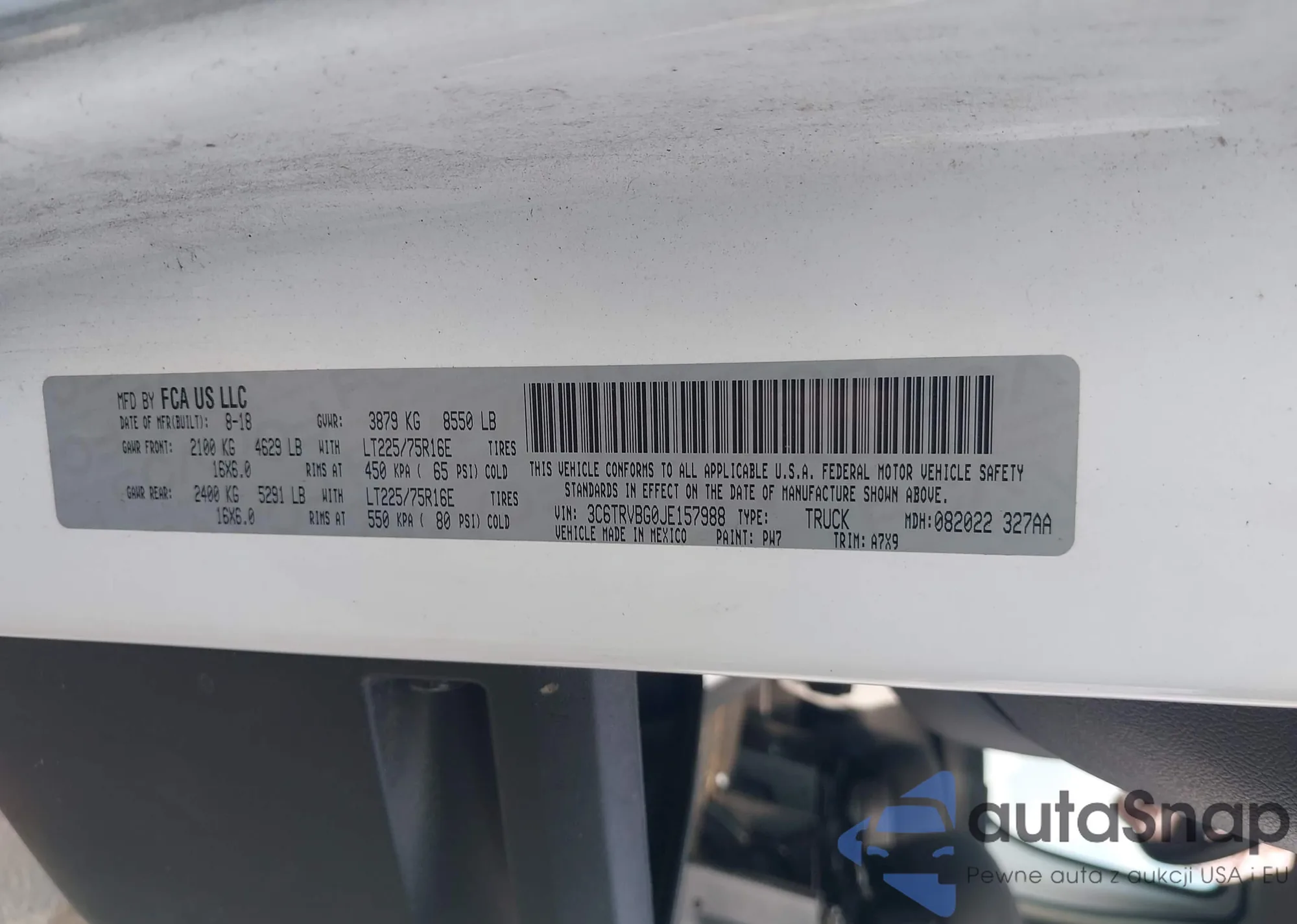 LOT: 43133786 VIN: 3C6TRVBG0JE157988