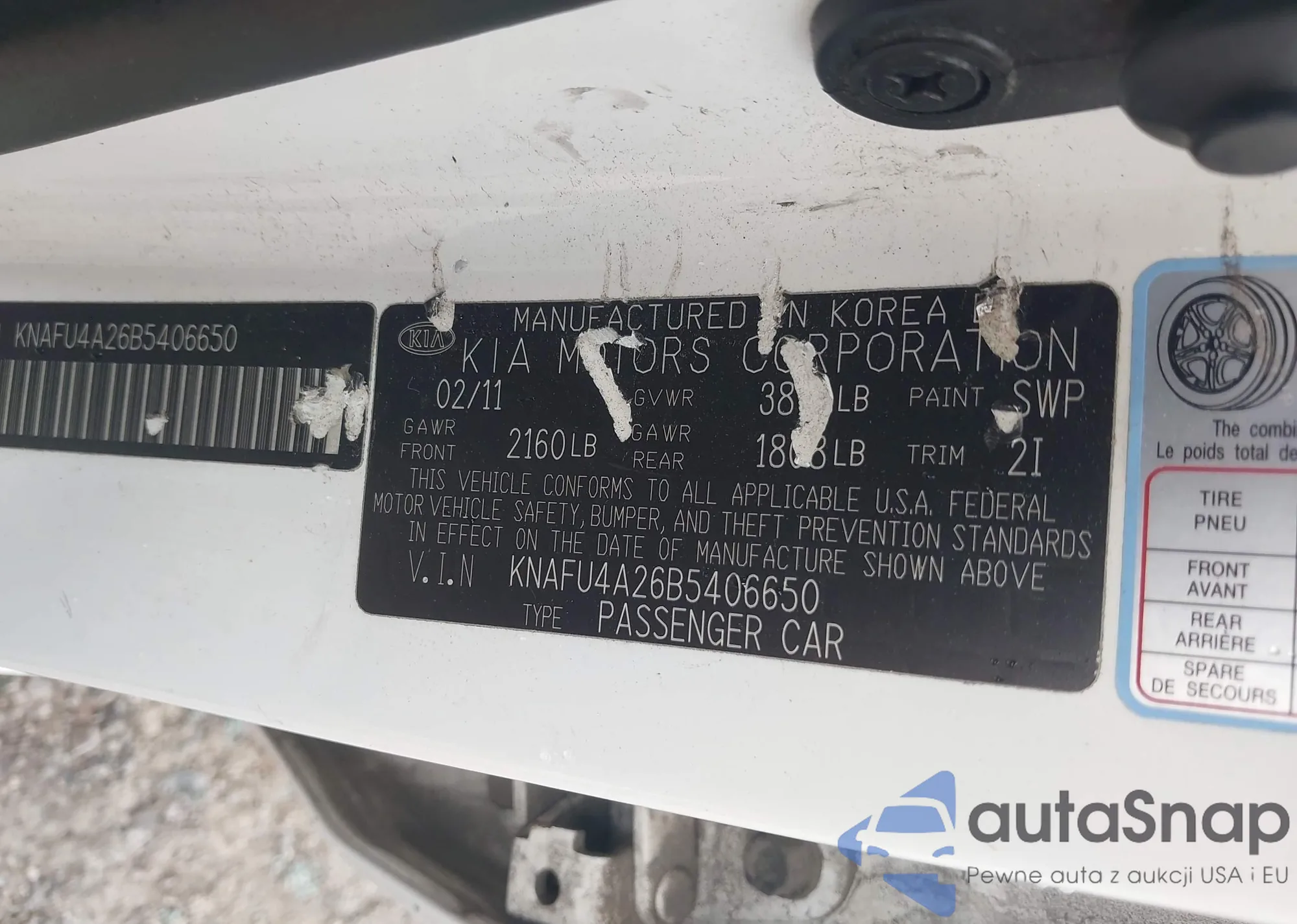 LOT: 43150179 VIN: KNAFU4A26B5406650