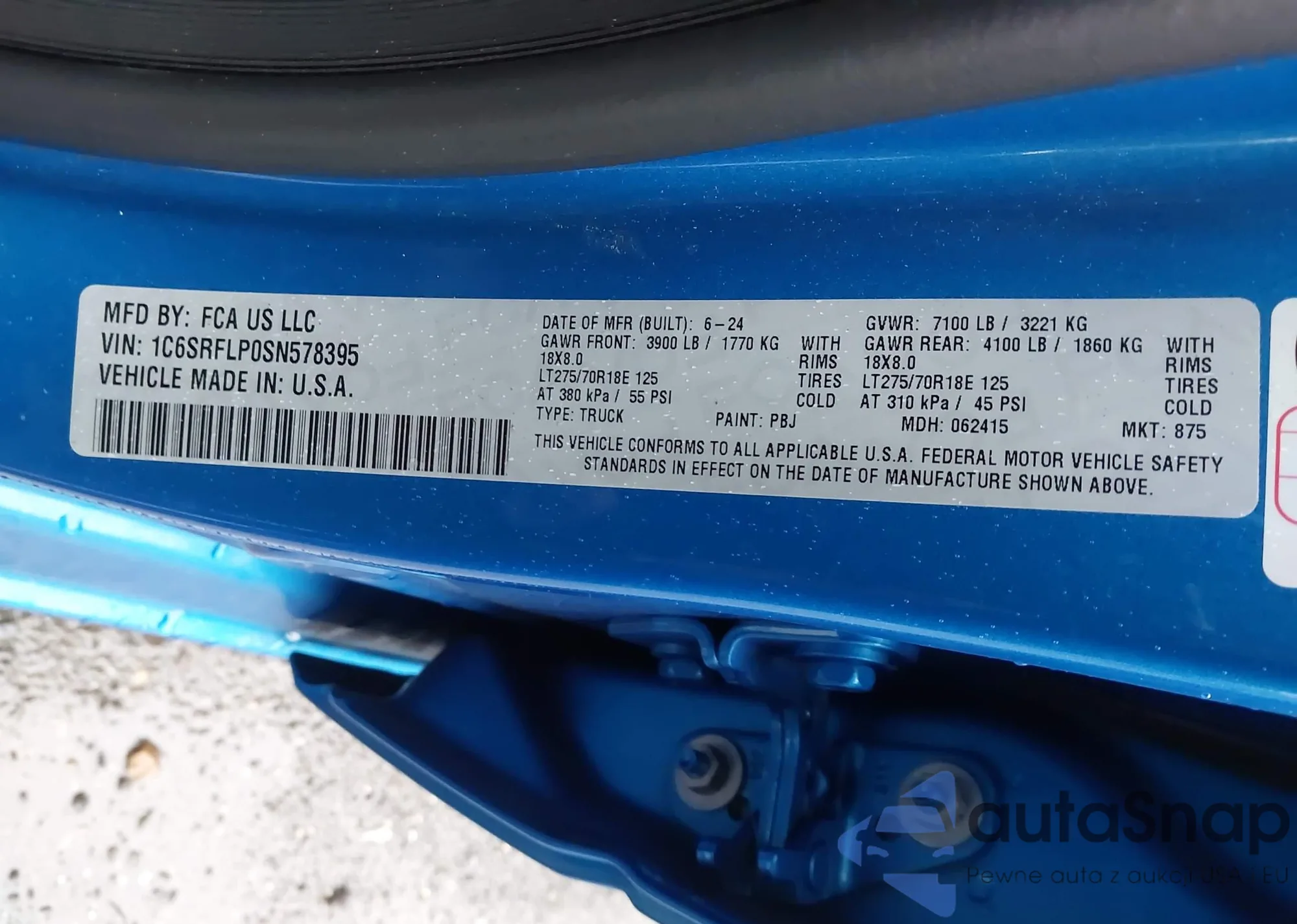 LOT: 43230495 VIN: 1C6SRFLP0SN578395